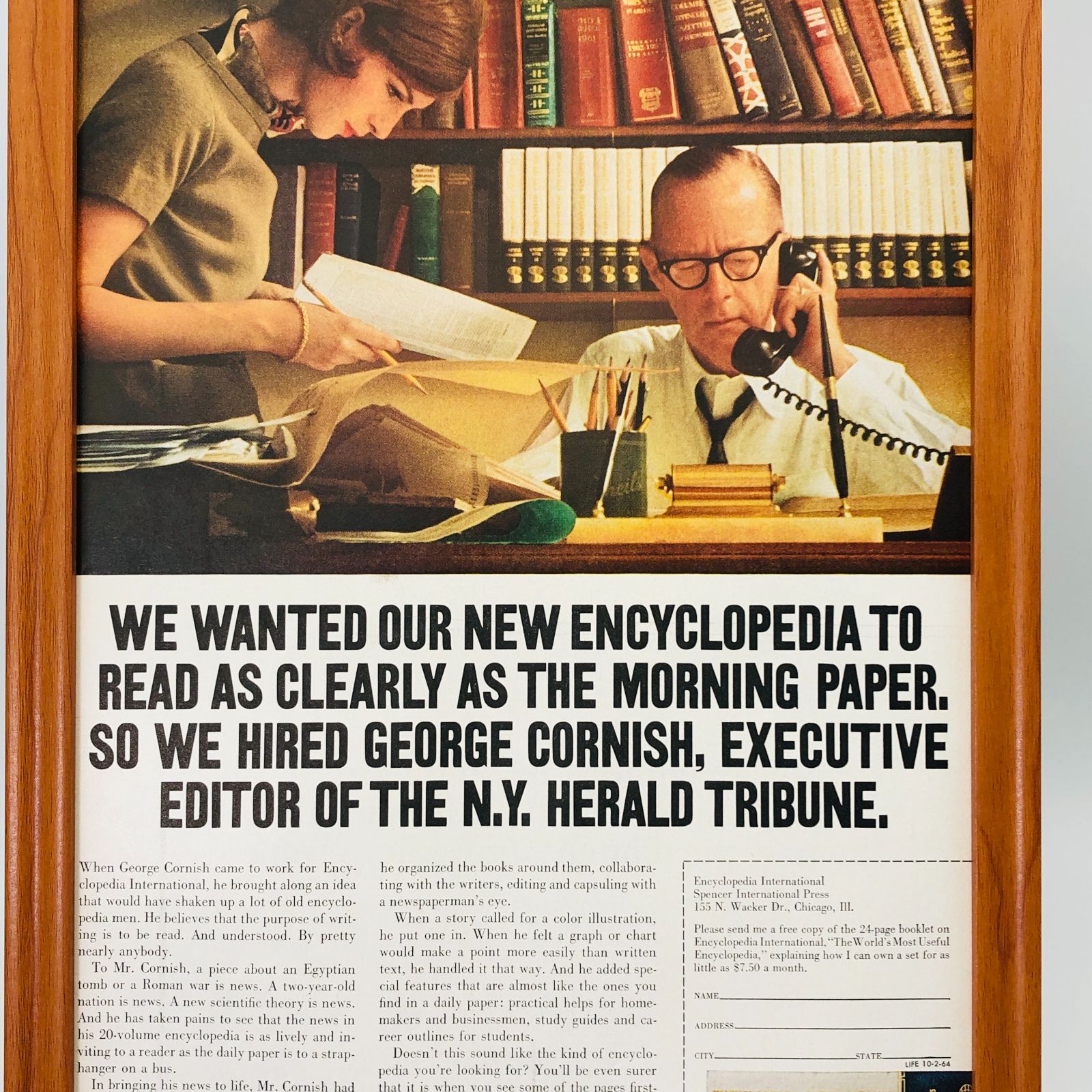ビンテージ 広告 ポスター  『 ニューヨークヘラルドトリビューン 』 フレーム付 ※貴重な当時物 1960's オリジナル アメリカ ヴィンテージ 輸入雑貨 アドバタイジング レトロ( AZ1258 )