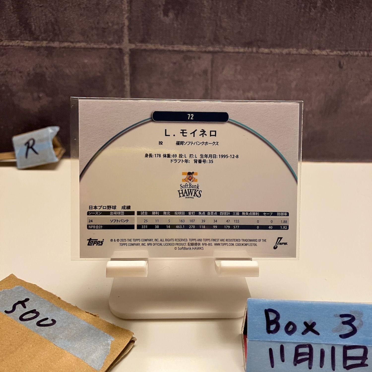 2025 Topps Finest NPB Livan Moinelo 052/250 FUKUOKA SOFTBANK HAWKS Purple Refractor カード