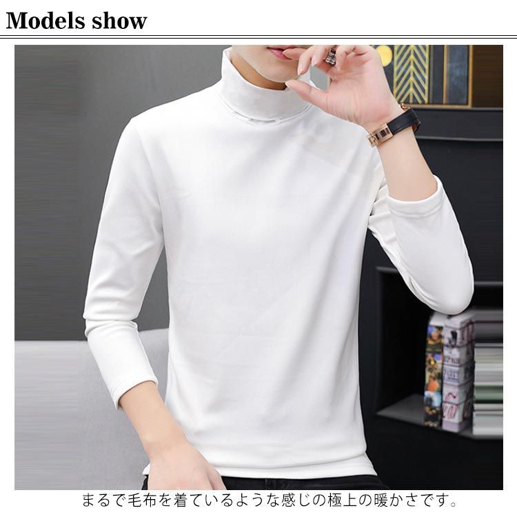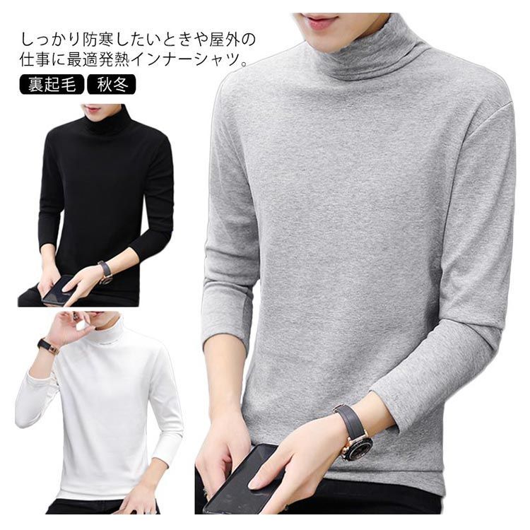 ストレッチ インナーシャツ メンズ 裏起毛 アンダーシャツ 極暖 保温 インナー ロンT メンズ ヒートテック 防寒 長袖Tシャツ 発熱 タートルネック Tシャツ ハイネック 秋冬 カットソー 保温 #goudoudou4178