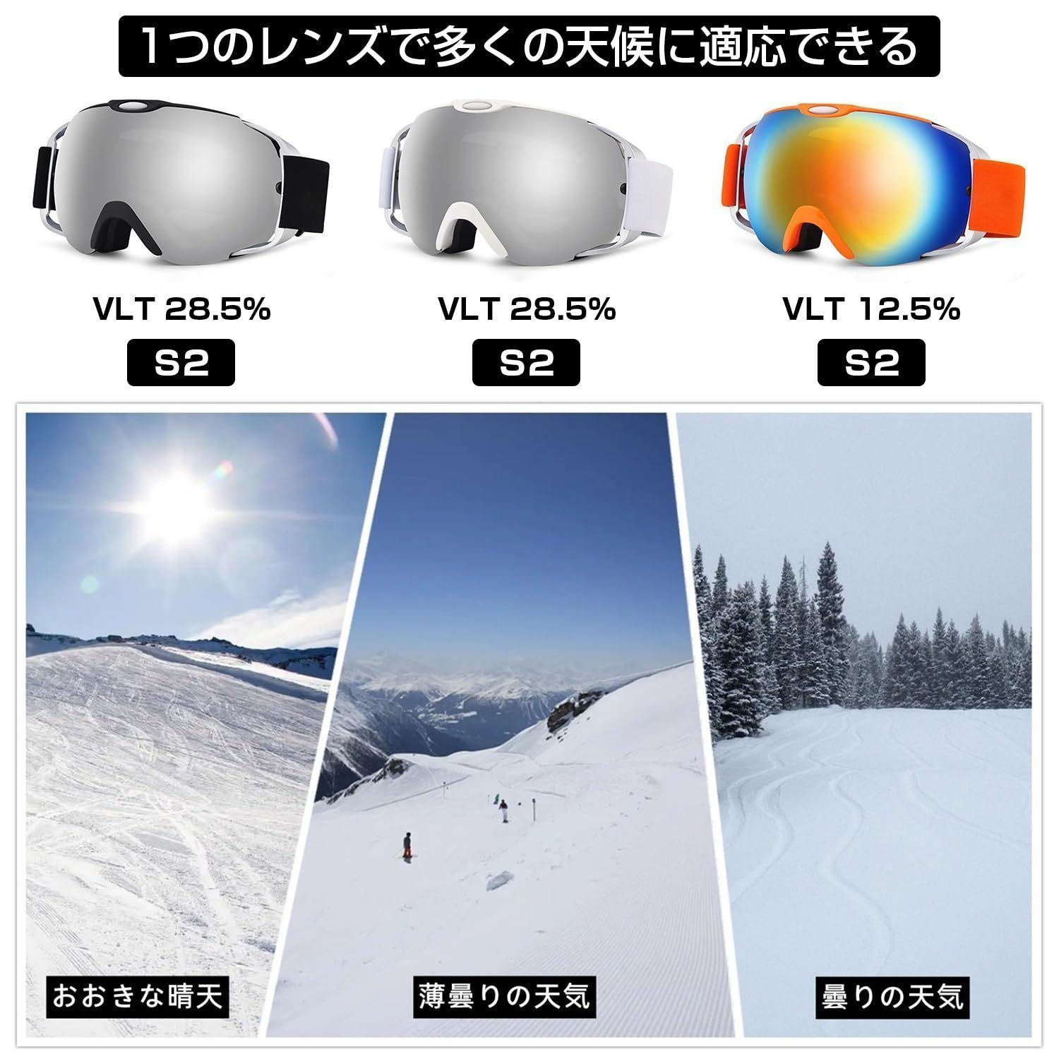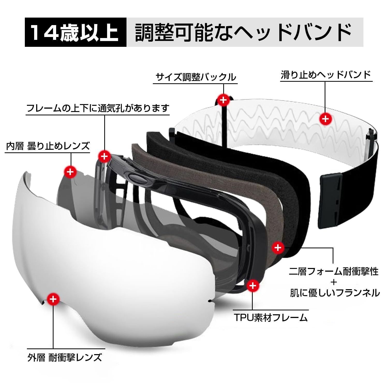 スキーゴーグル スノーゴーグル スノーボードゴーグル 広視野 メガネ対応 [BOFAC] UV紫外線カット 曇り止め 大人 男女兼用 登山/スケート/スノーモービル/スキー