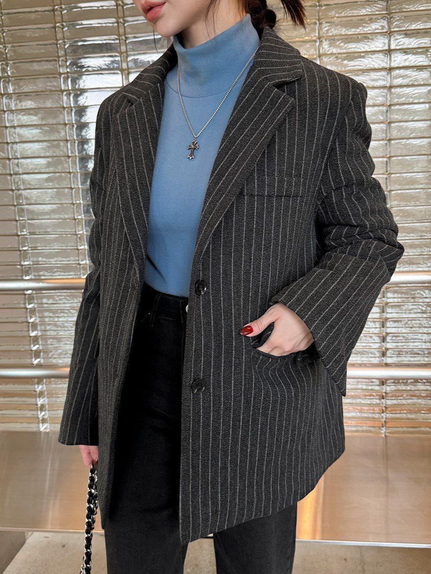 ポメリ ジャケット 韓国国内 ウール ボンディング 暖かい ダウン ストライプ ルーズフィット スリット カラ 新作
