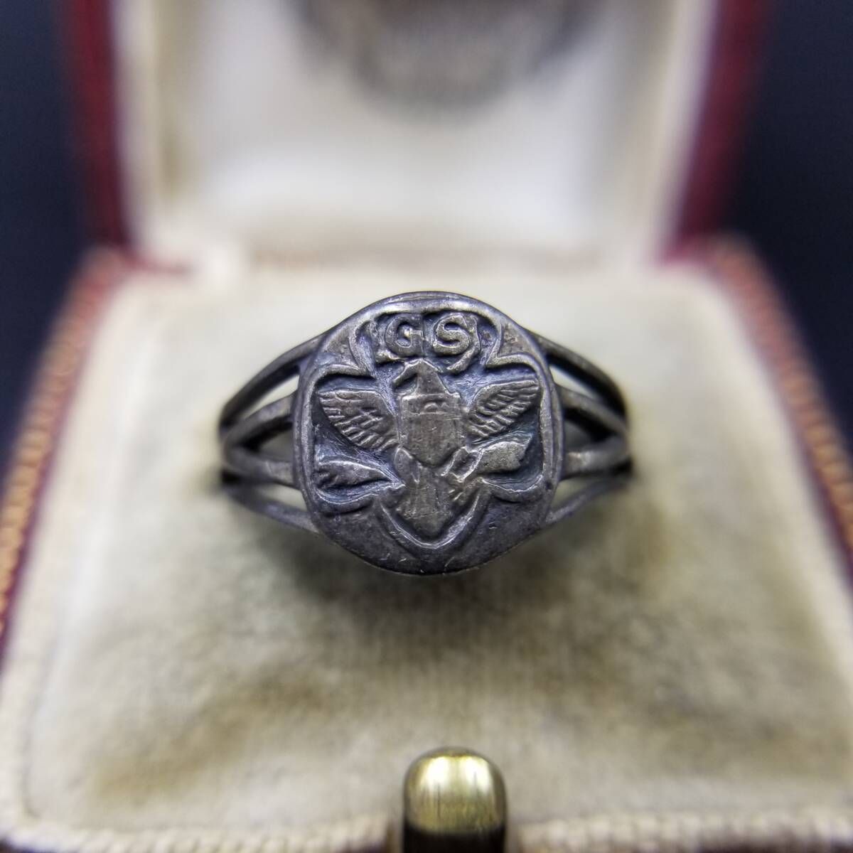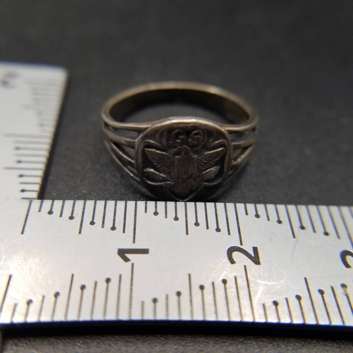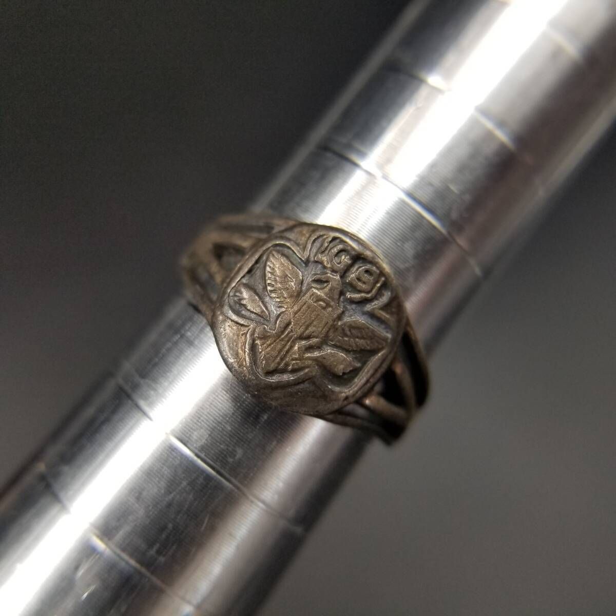 US Girl Scouts ヴィンテージ ガールスカウト シグネット リング シロツメクサ 鷲 紋章 アールデコ 925 シルバー 指輪 銀 Y21-H
