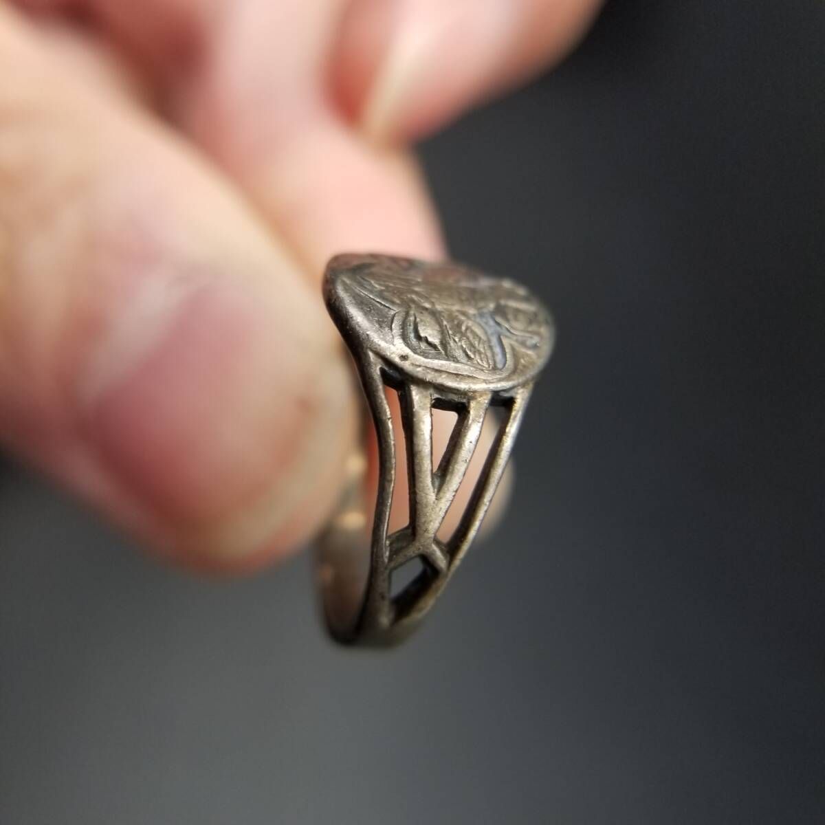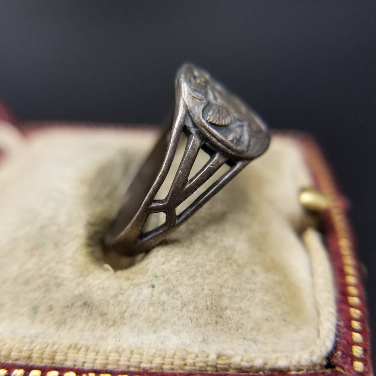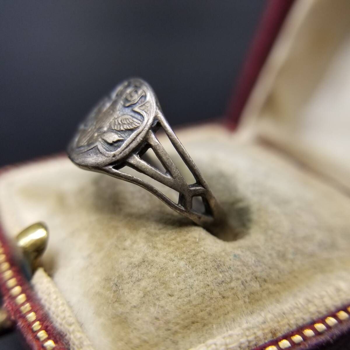 US Girl Scouts ヴィンテージ ガールスカウト シグネット リング シロツメクサ 鷲 紋章 アールデコ 925 シルバー 指輪 銀 Y21-H