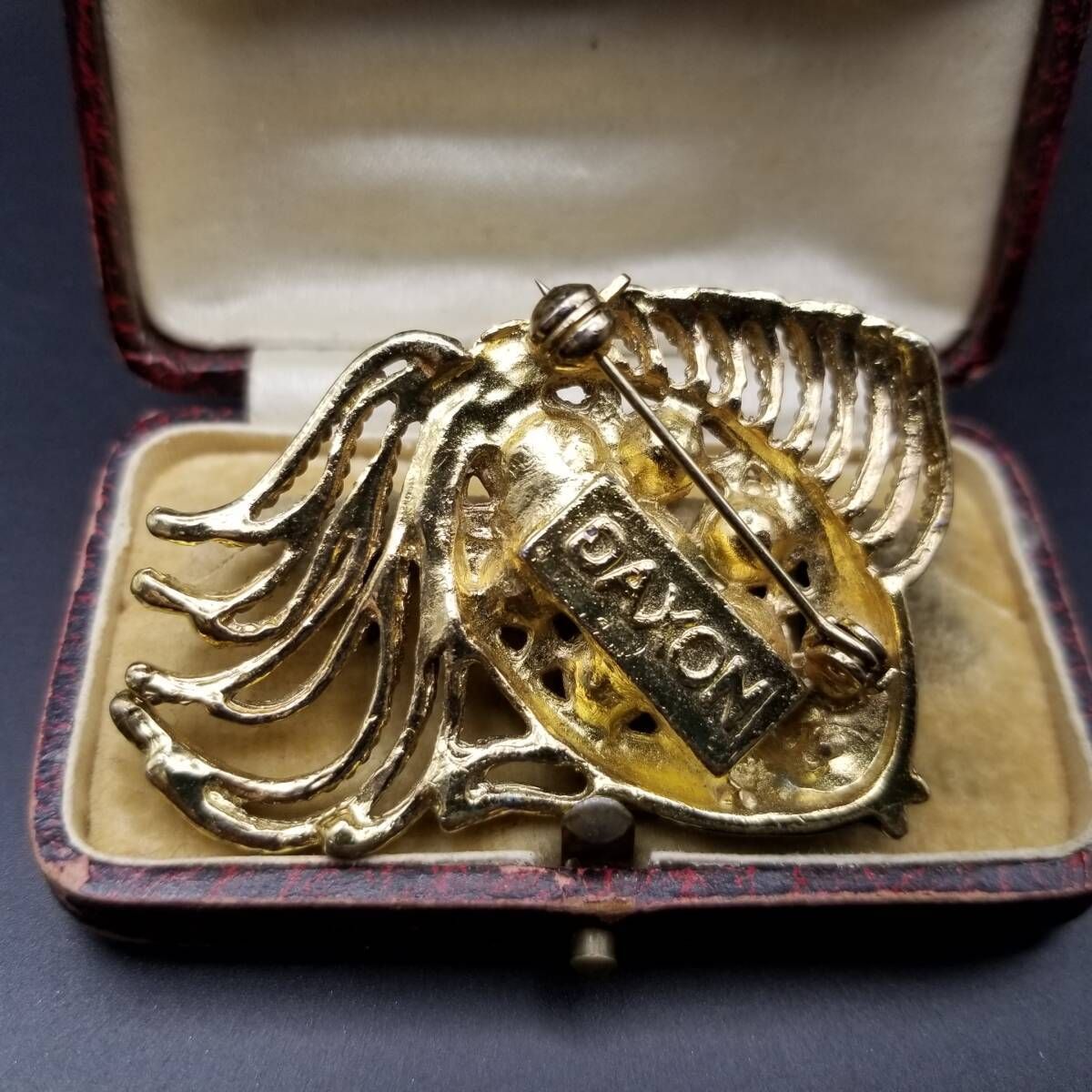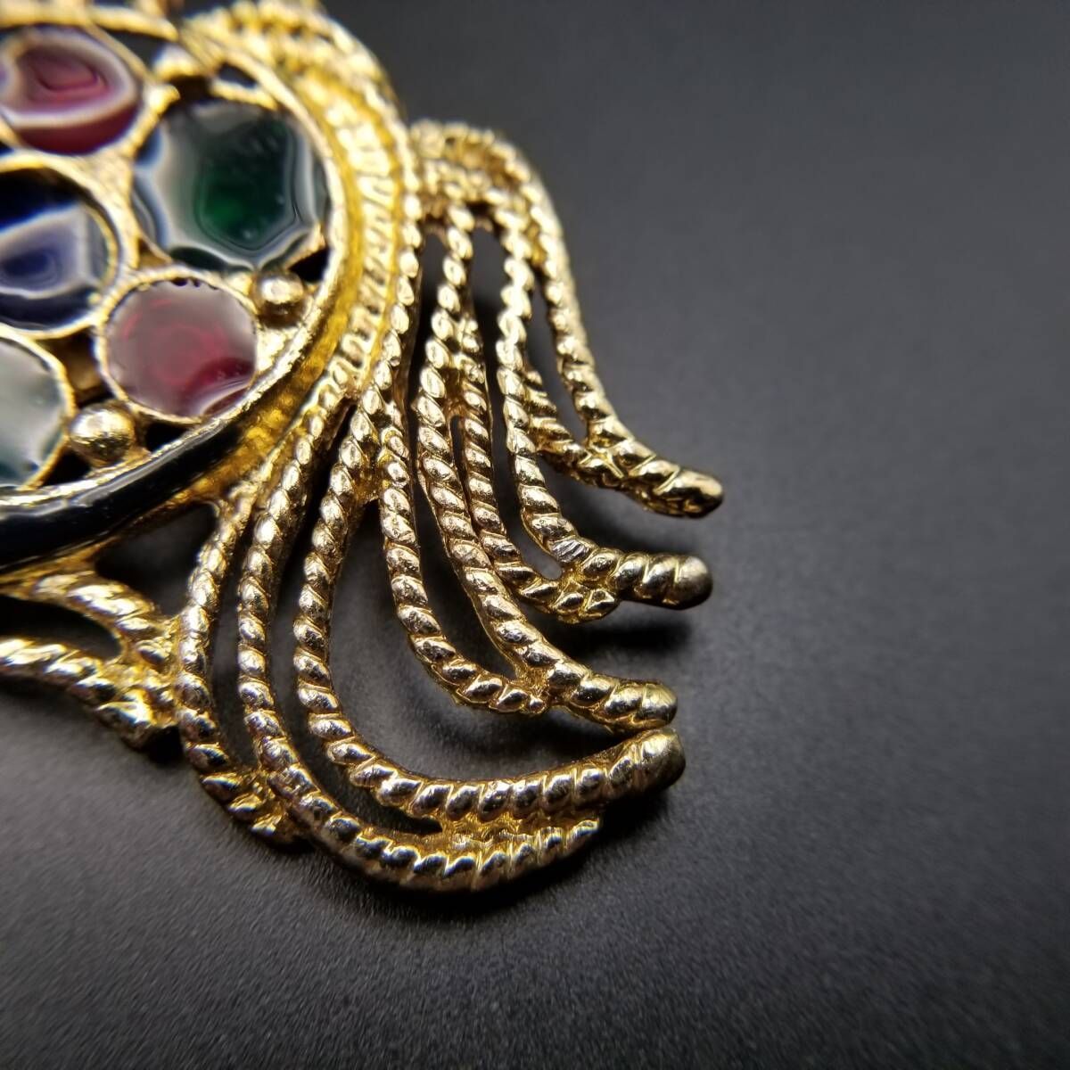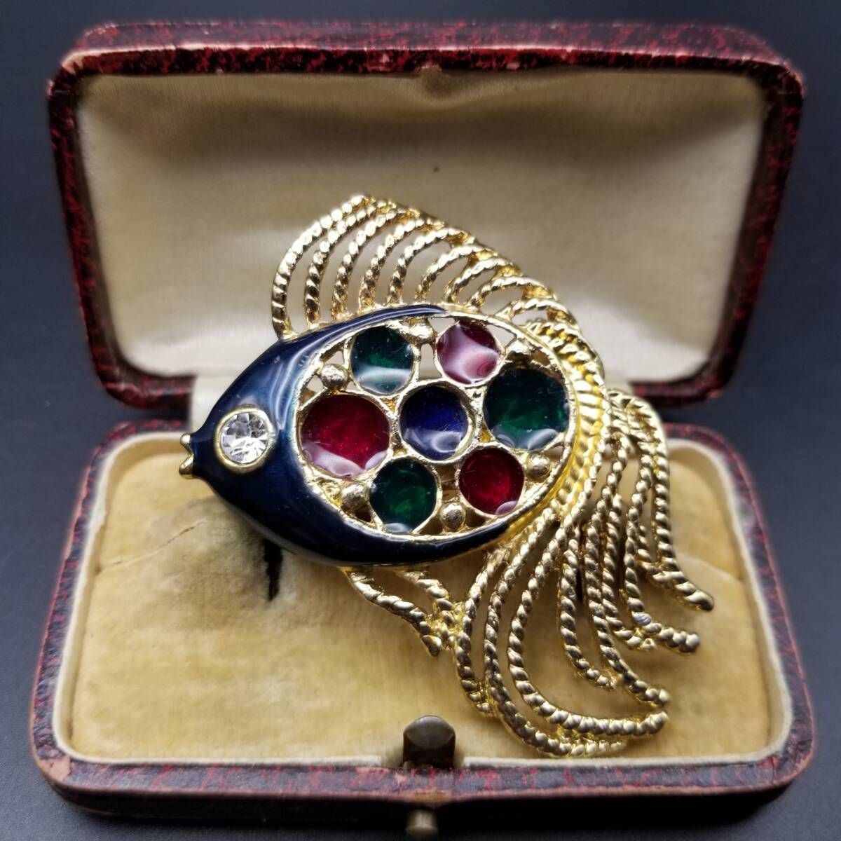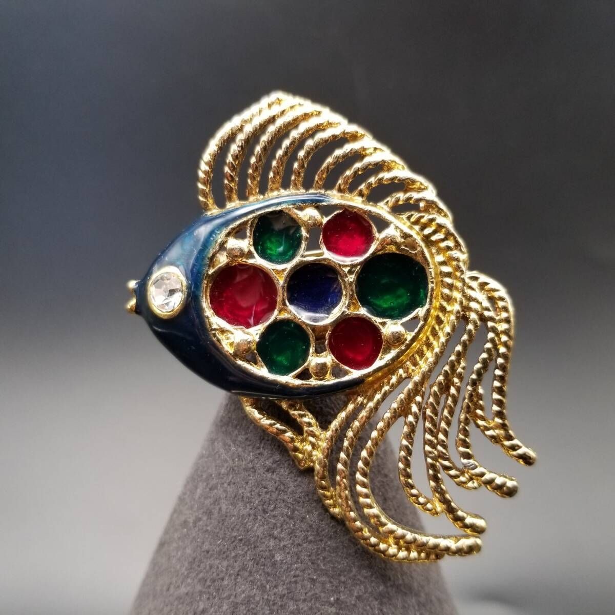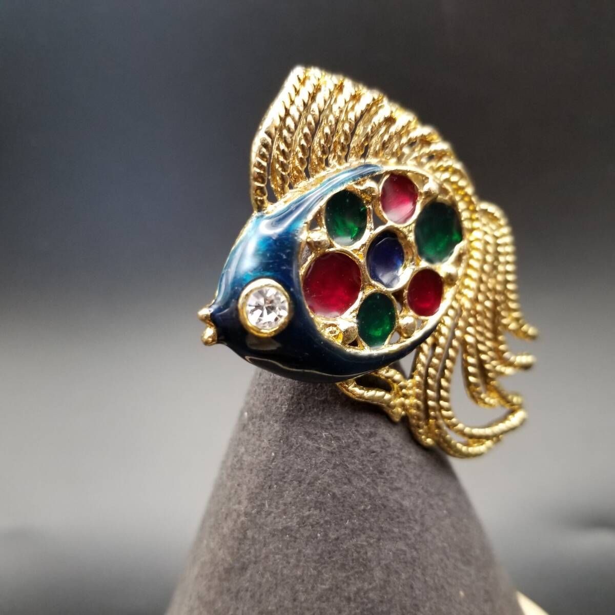 80's DAXON 英国 ヴィンテージ 尾の長い魚 マルチカラー ガラス インレイ ヴィンテージ フィッシュ ブローチ 大ぶり 存在感 Y22-O
