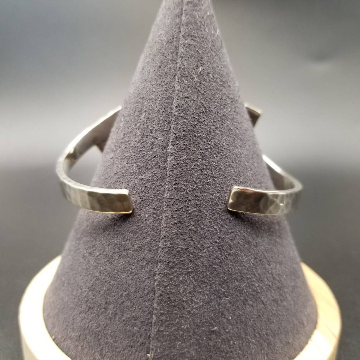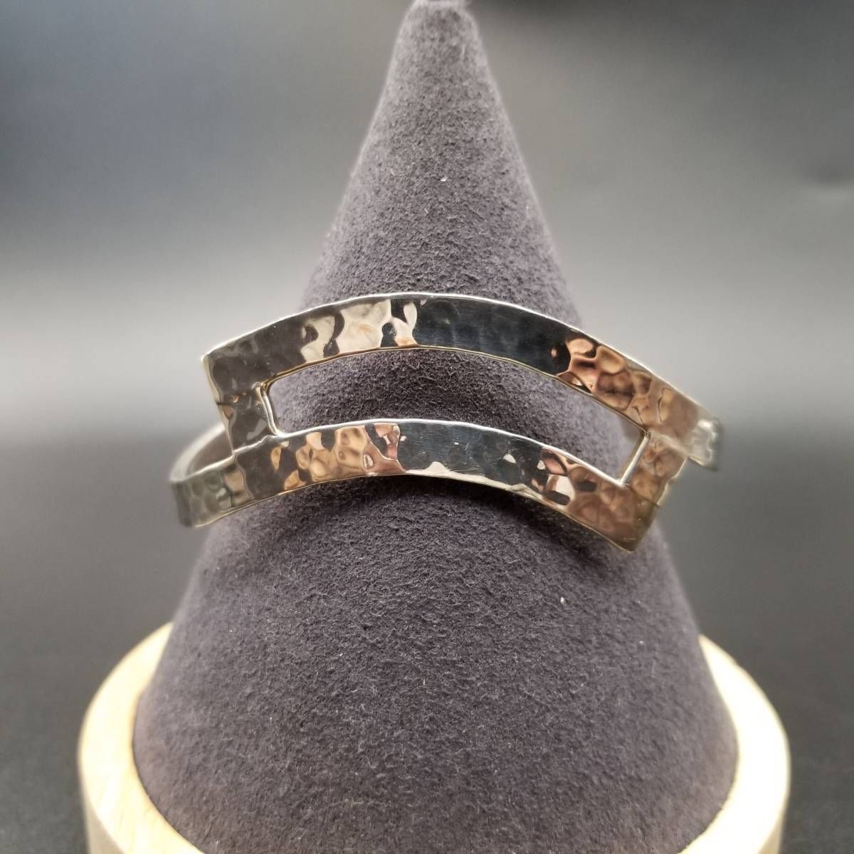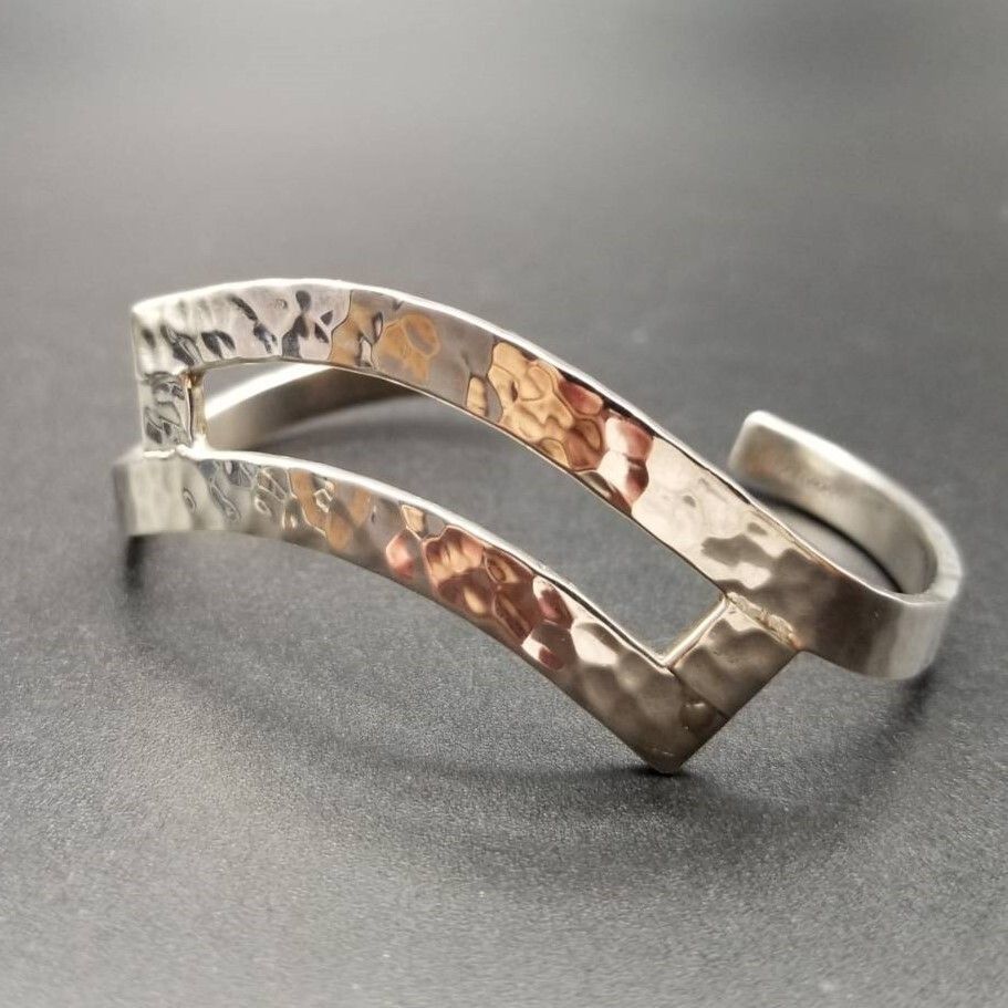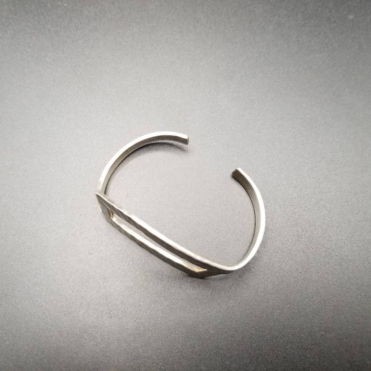 メキシコ 925シルバー アブストラクト スクエア ハンマー打ち ヴィンテージ カフブレスレット 銀細工 槌目 モダンジュエリー MEXICO 8Y-O