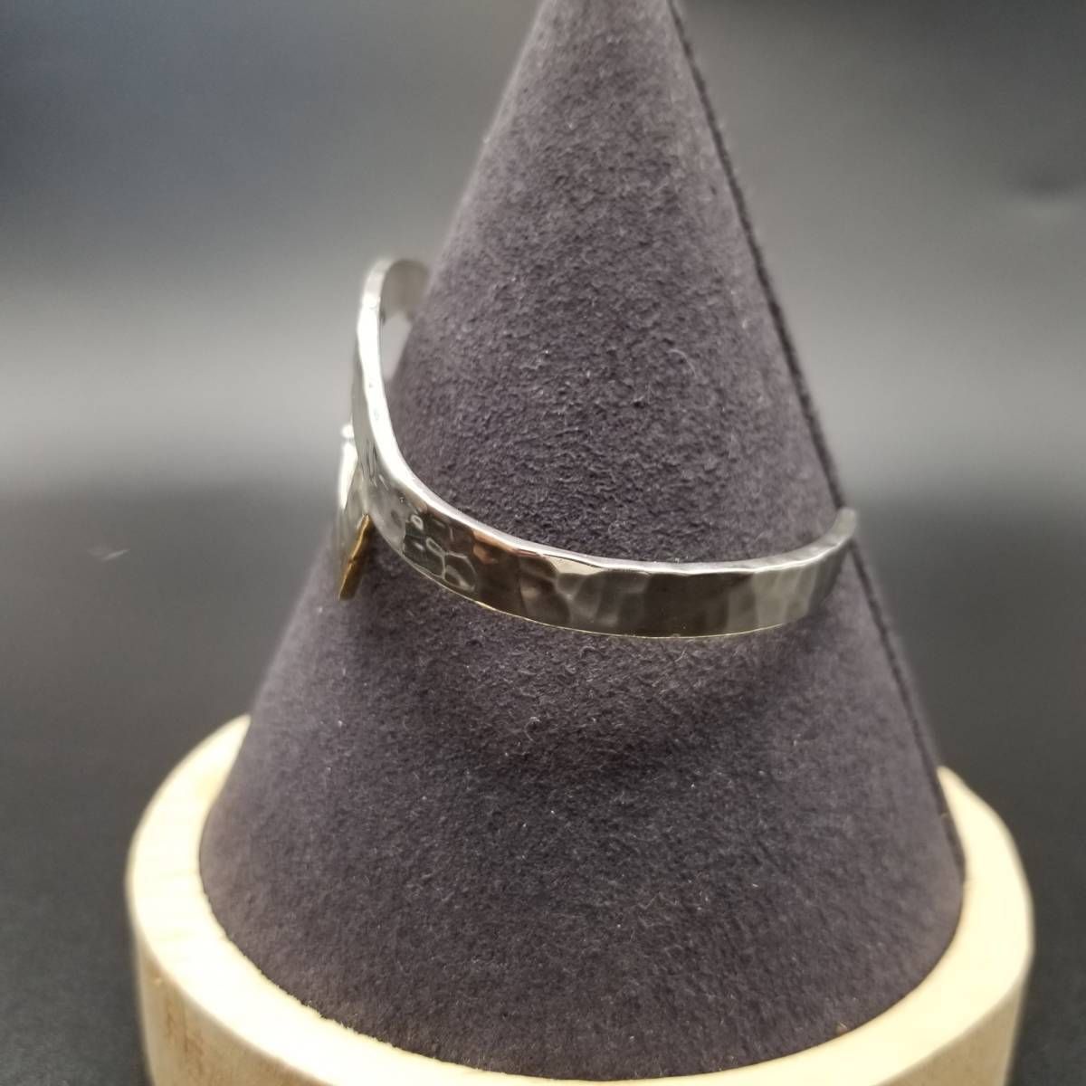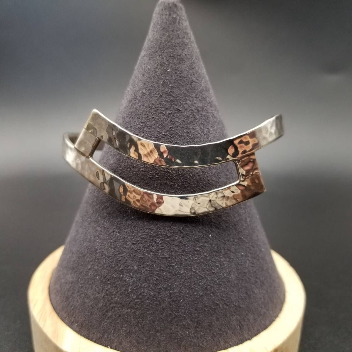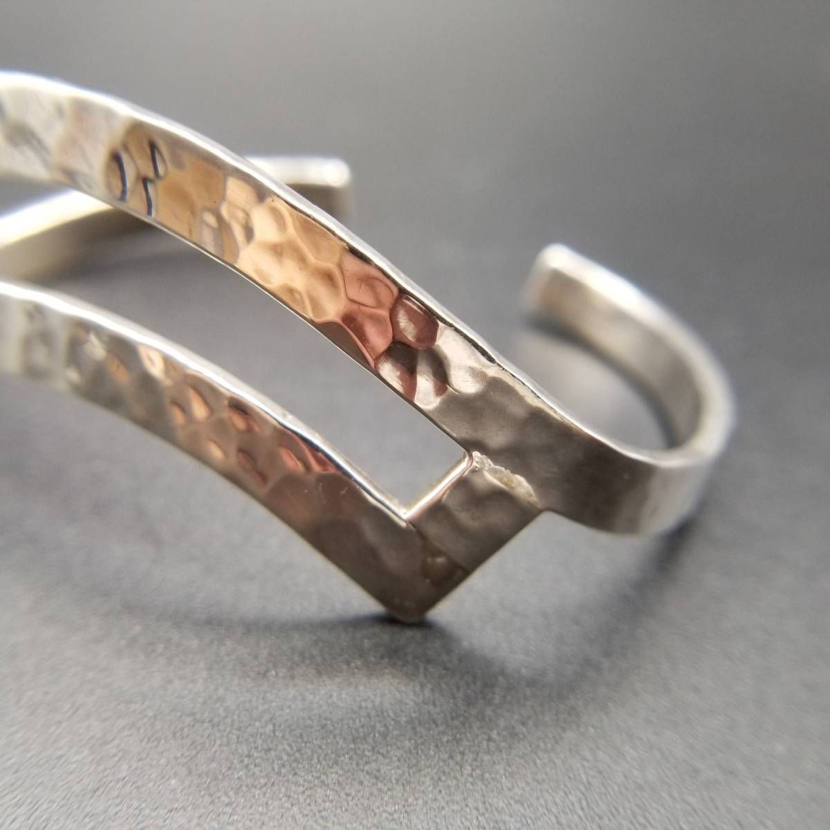 メキシコ 925シルバー アブストラクト スクエア ハンマー打ち ヴィンテージ カフブレスレット 銀細工 槌目 モダンジュエリー MEXICO 8Y-O