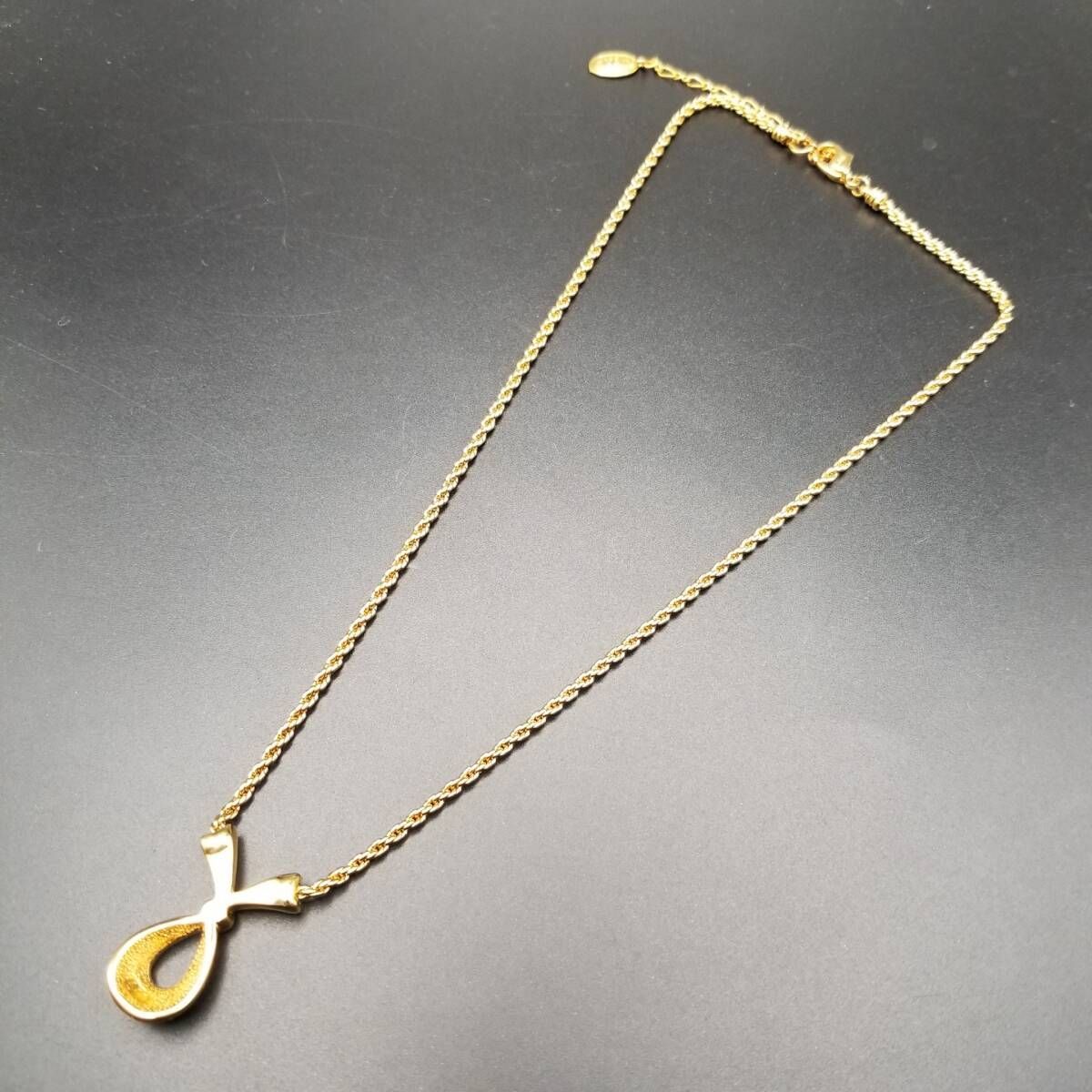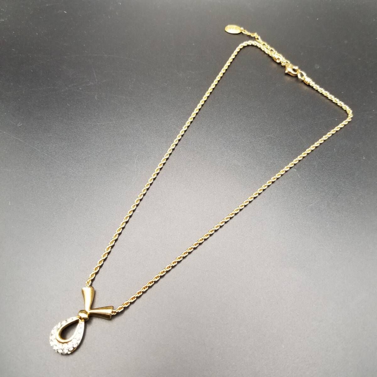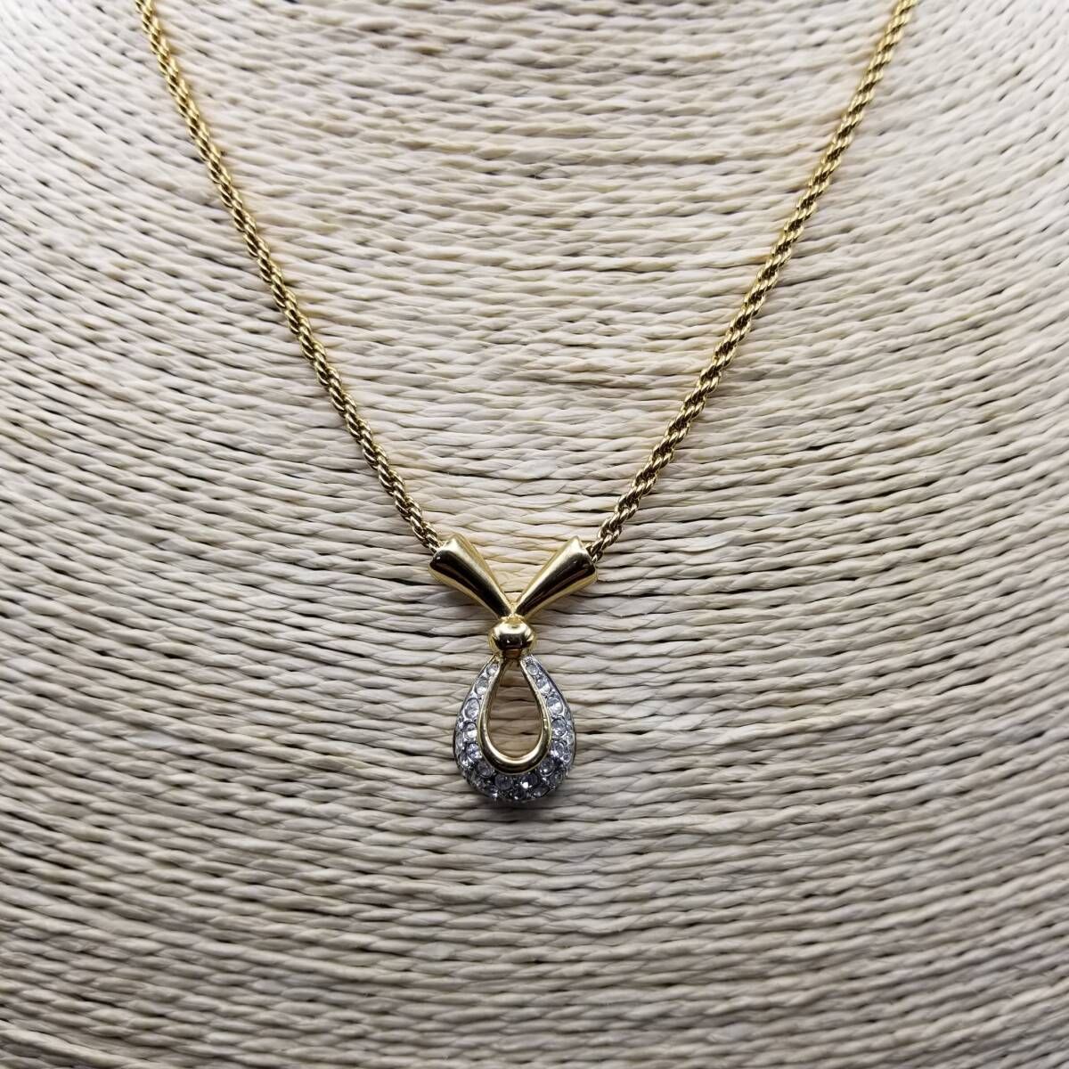 A&S Attwood & Sawyer ラインストーン 煌めき クロスリボン ヴィンテージ ペンダント ネックレス ロープチェーン ゴールドトーン Y22-C