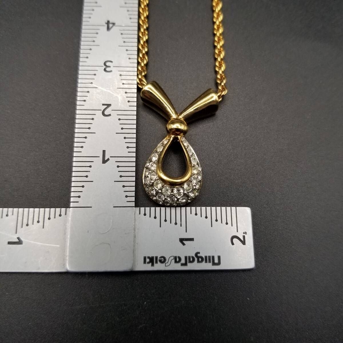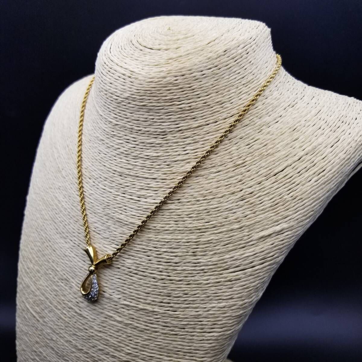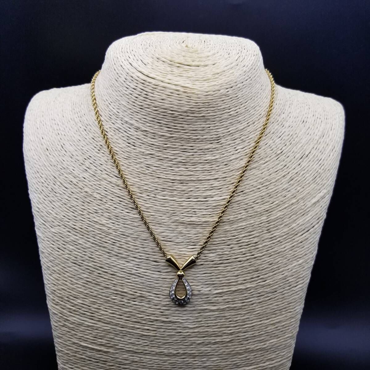 A&S Attwood & Sawyer ラインストーン 煌めき クロスリボン ヴィンテージ ペンダント ネックレス ロープチェーン ゴールドトーン Y22-C