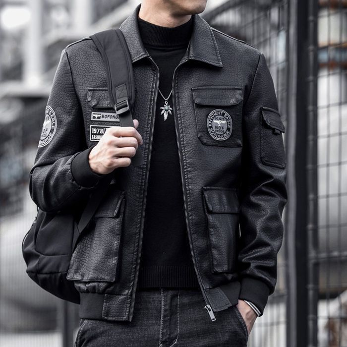 レザージャケット メンズ ミリタリージャケット 革ジャン 刺繍 ライダースジャケット フライトジャケット 皮ジャン バイクジャケット PUレザー アウター 黒 秋 冬 mingjue01