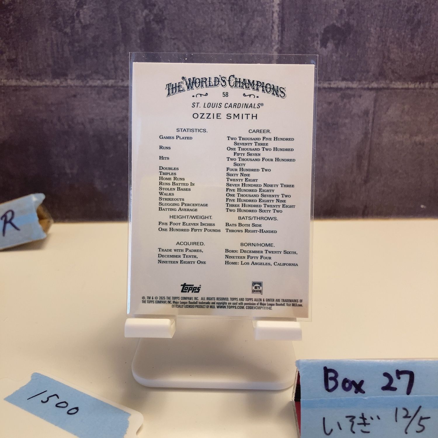 2025 TOPPS ALLEN & GINTER OZZIE SMITH ST. LOUIS CARDINALS THE WORLD'S CHAMPIONS X-fractor カード