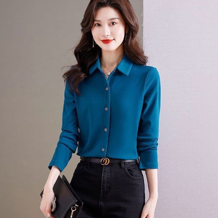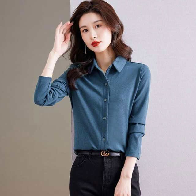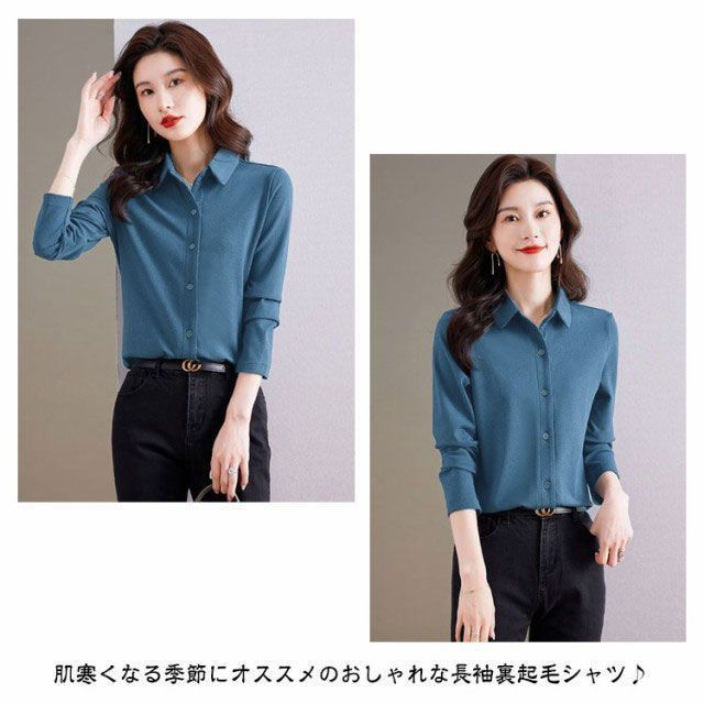 シャツ ブラウス レディース 長袖 トップス 秋冬 裏起毛 防寒 暖かい インナー オフィス カジュアル ビジネス 通勤 事務服 厚手 大人 シンプル 大きいサイズ