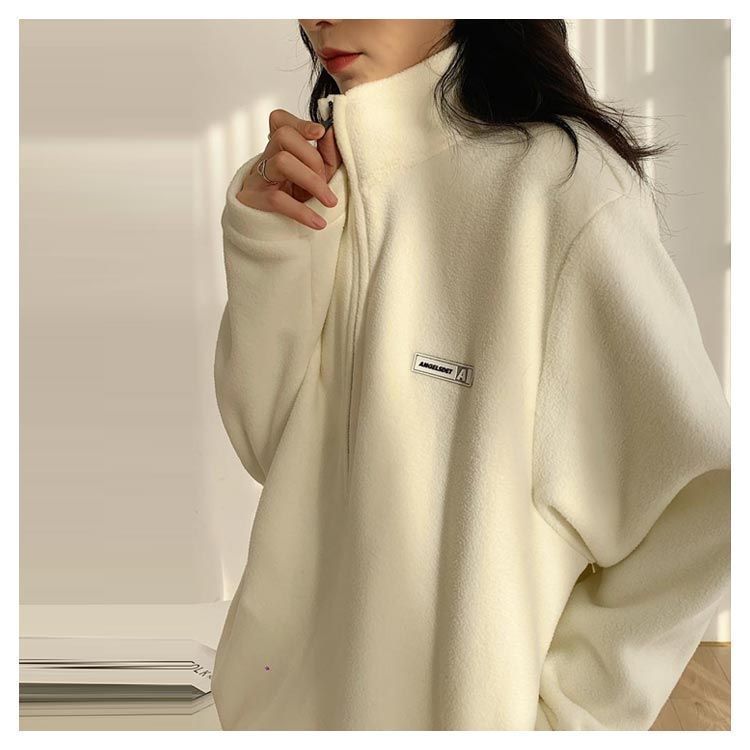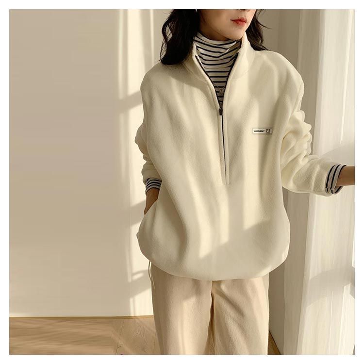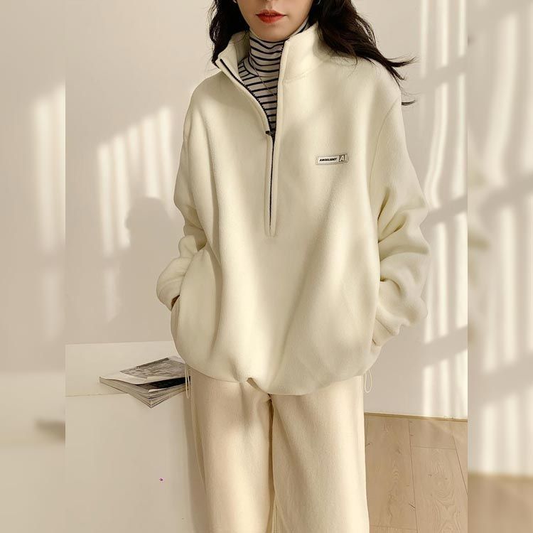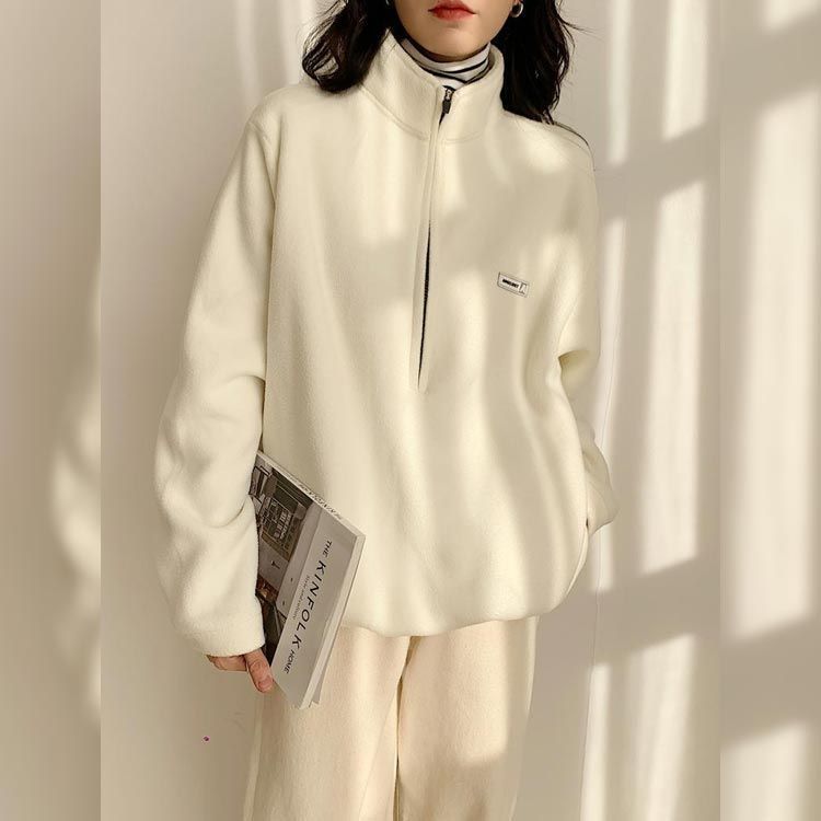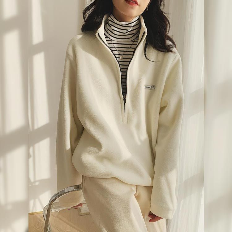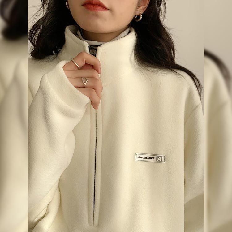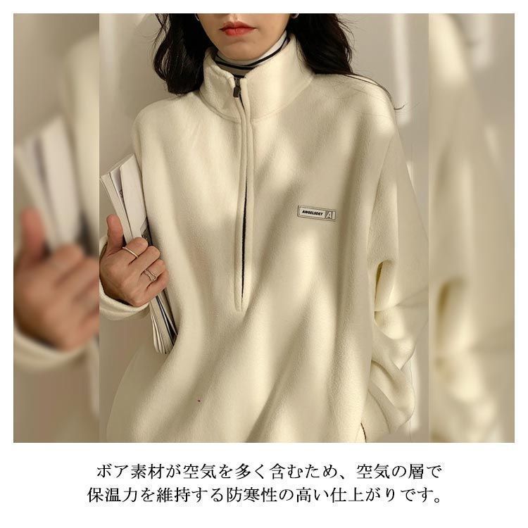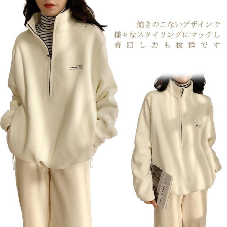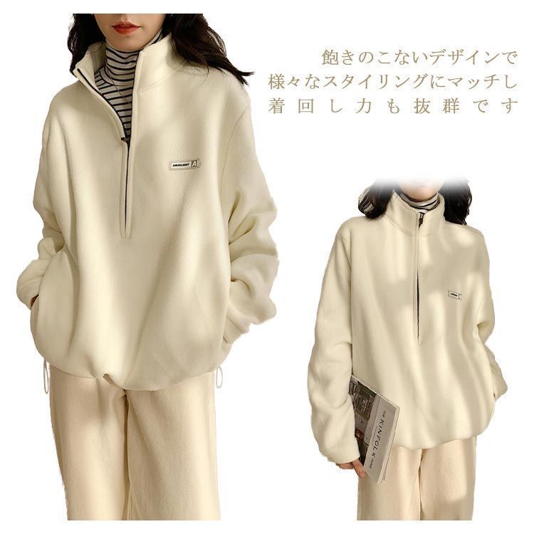 トレーナー パーカー レディース ボアフリー ハイネック ハーフジップ 襟立 フード無し ゆったり カジュアル シンプル 大人 無地 ワンポイント 防寒 保温 春 秋 冬 M L 2L 3L