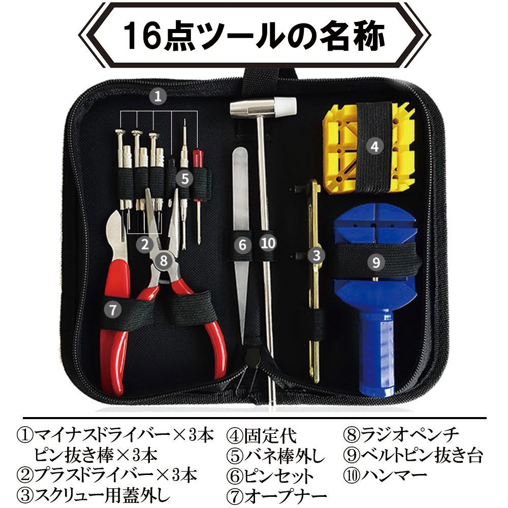 腕時計 工具 16点セット 修理 交換 調整 ベルト バンド コマ 電池