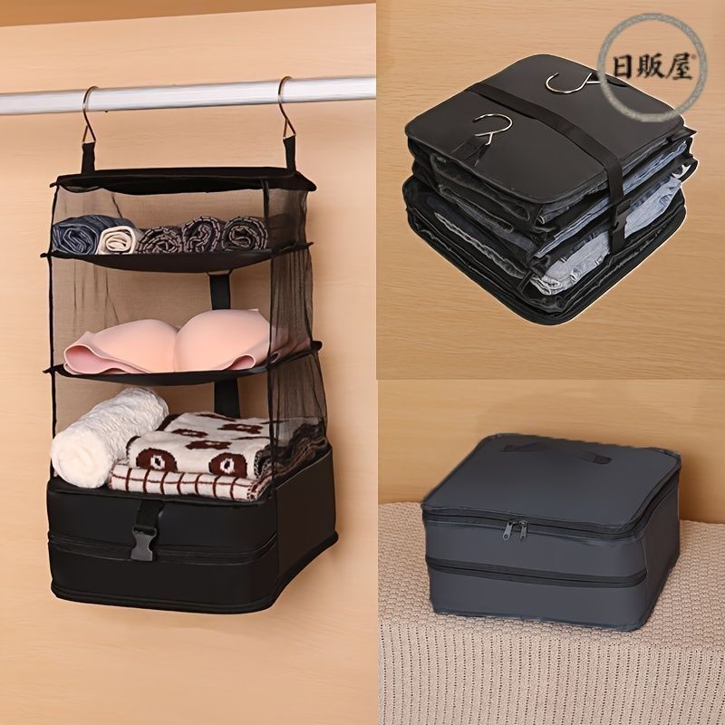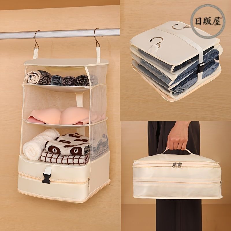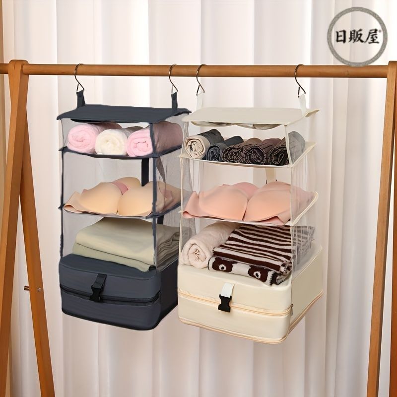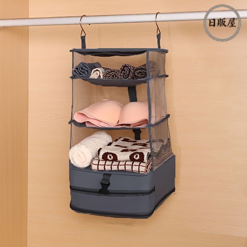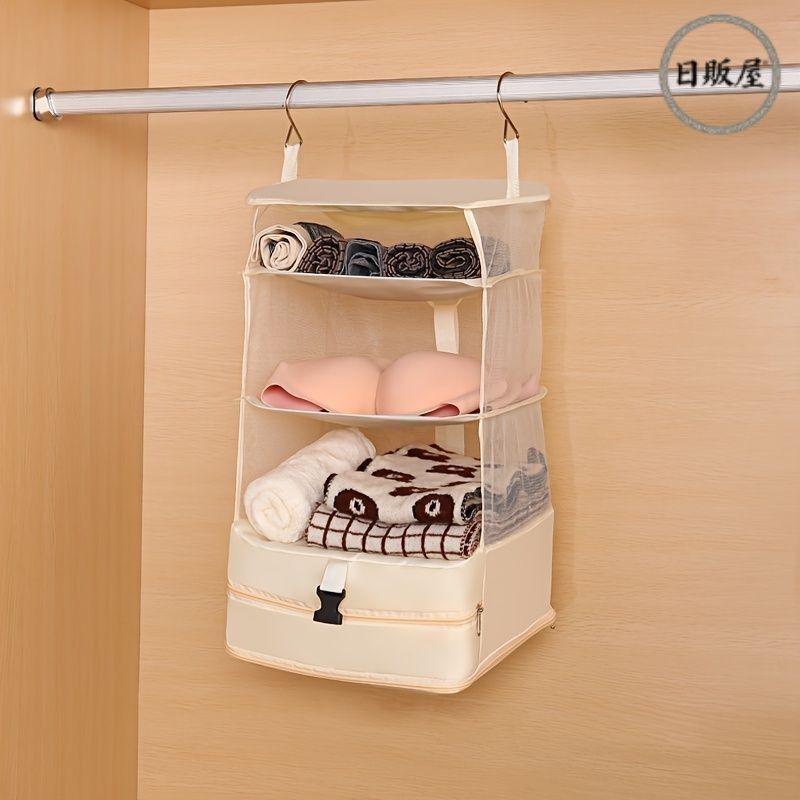 4段のハンギングクローゼオーガナイザー - 多くのコンパートメントを備えた重量級のファブリックストレージラック、デリケート、軽量で大容量のベッドルーム、クローゼット、旅行のエッセンシャル用