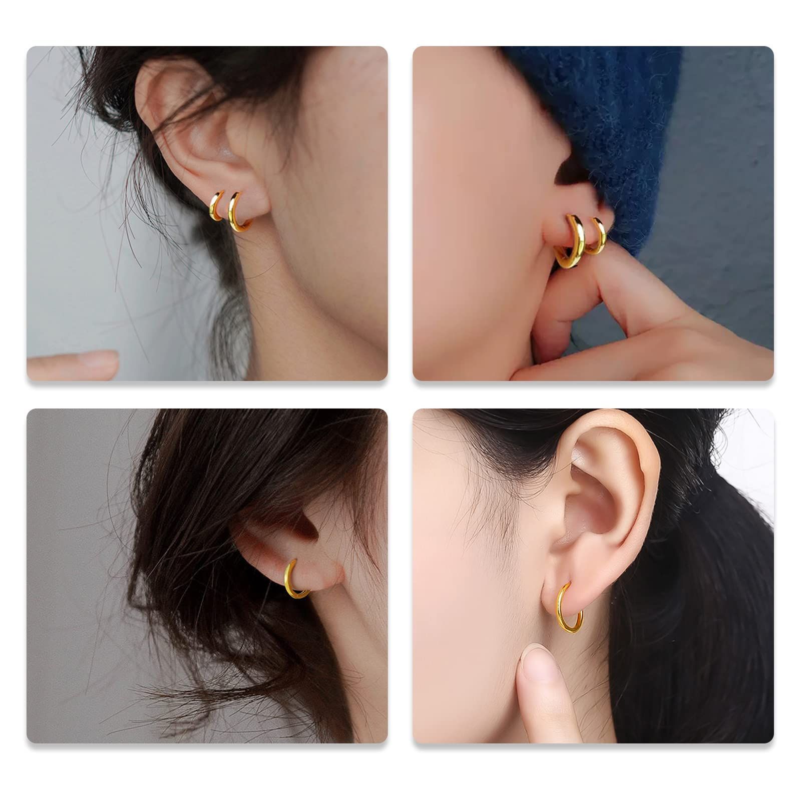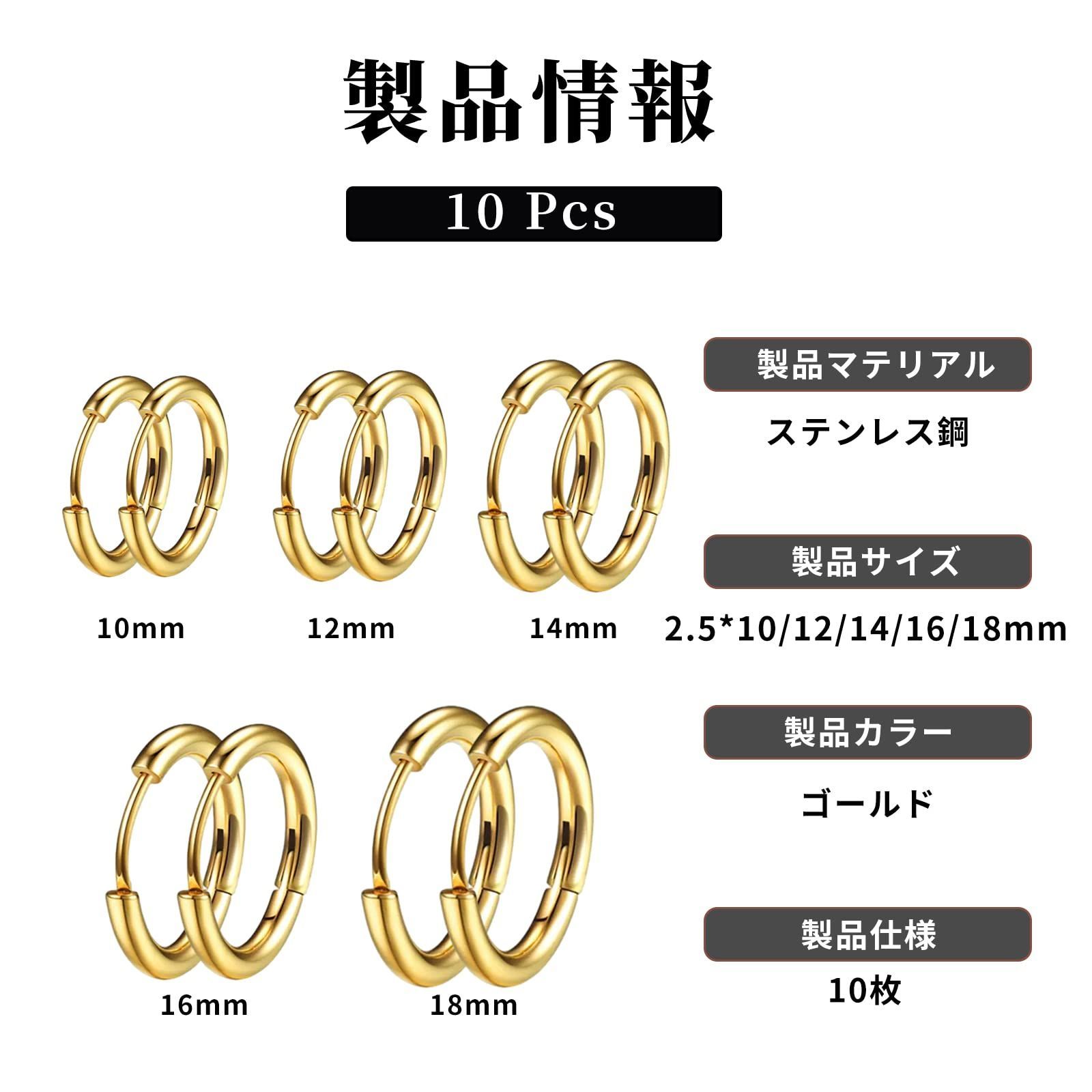 【新着商品】両耳用 ピアス リングピアス 金属アレルギー対応 レディース 人気 エレガント メンズ アクセサリー サージカルステンレス フープピアス【5ペア】 男女兼用 ゴールド [Doyime] (サイズ10mm-12mm-14mm-16mm-18mm、幅2