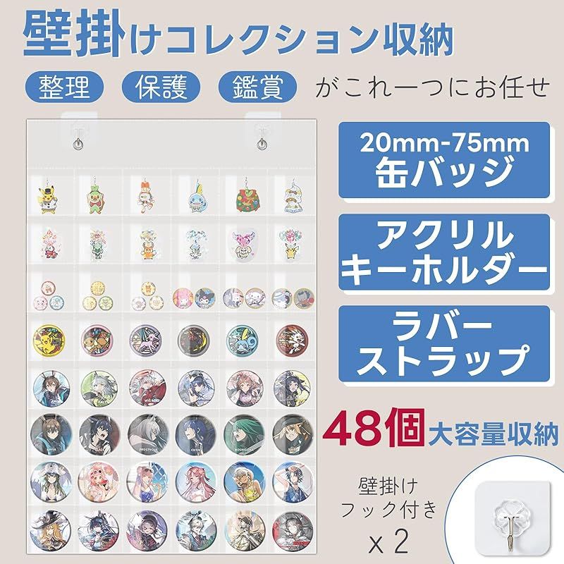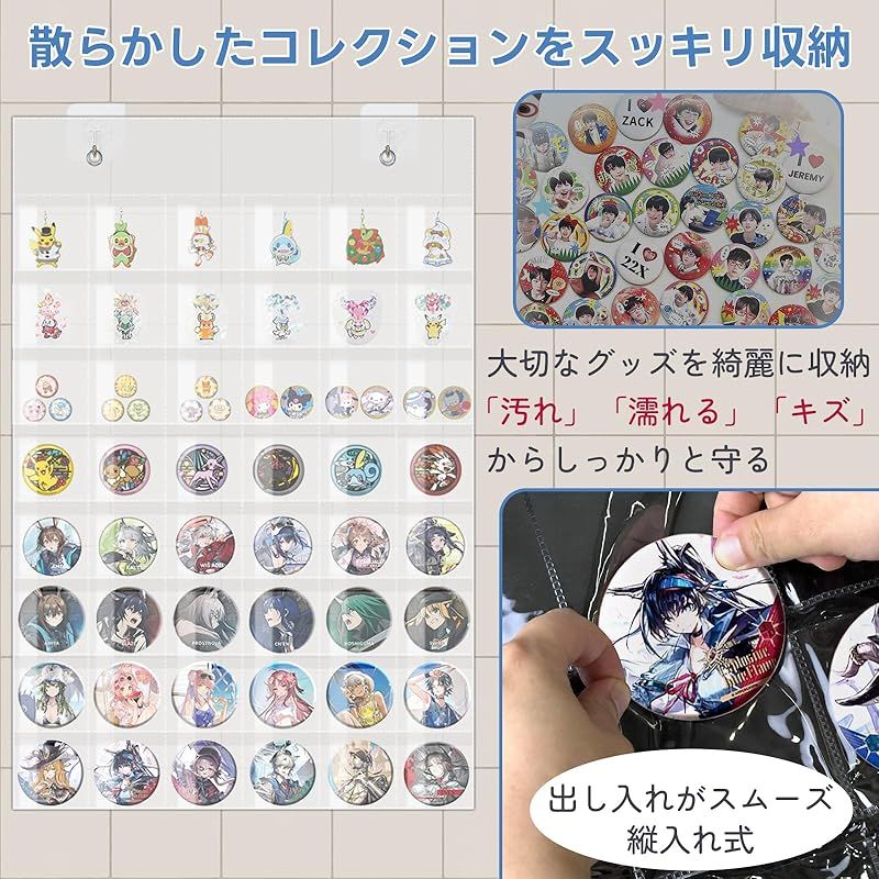 さえだ 缶バッジ収納ファイル 壁掛け ウォールポケット 48枚収納 大容量 缶バッジ アクリルキーホルダー ラバーストラップ 缶バッジディスプレイ 省スペース収納 缶バッジ収納ファイル 推し活 32mm/44mm/57mm/65mm/75mm 収納(缶バッジ収