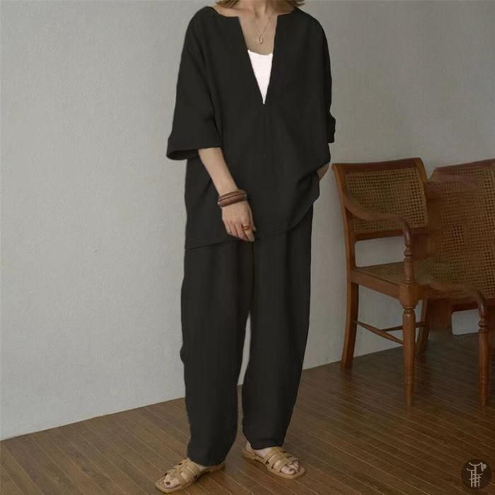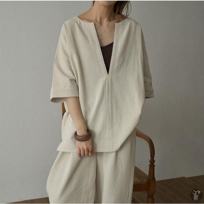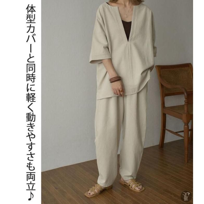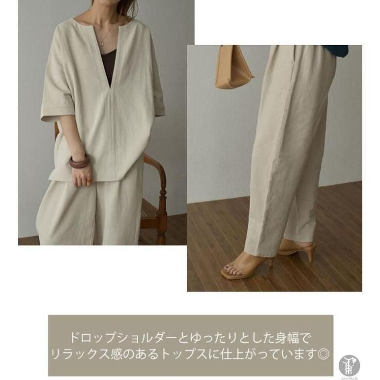 上下セット レディース セットアップ リネン 夏 薄手 ルームウェア 部屋着 夏 涼しい ゆったり シャツ バルーンパンツ
