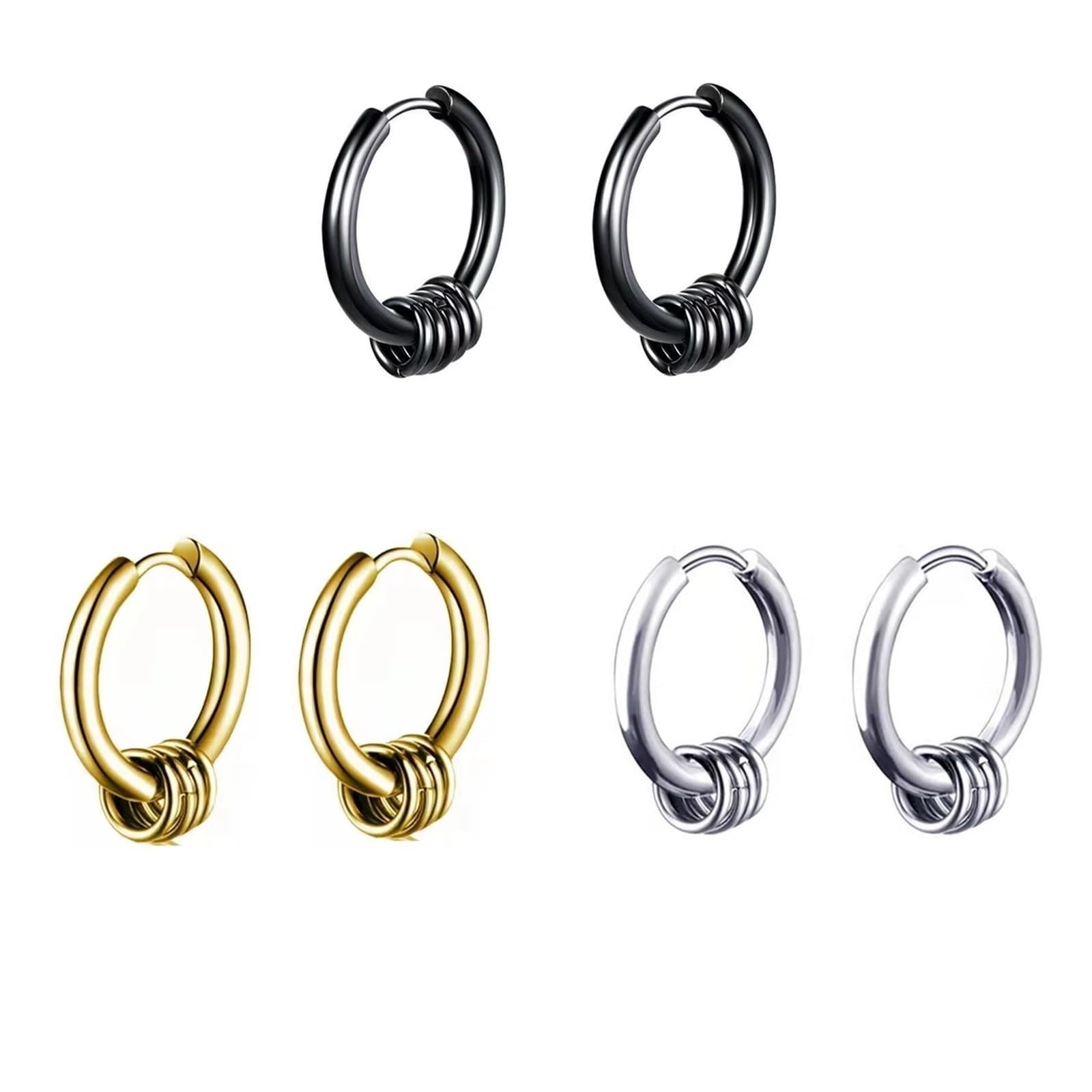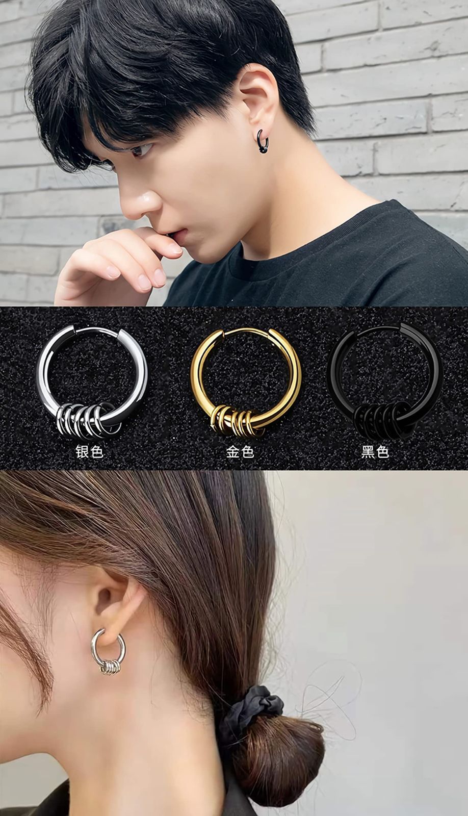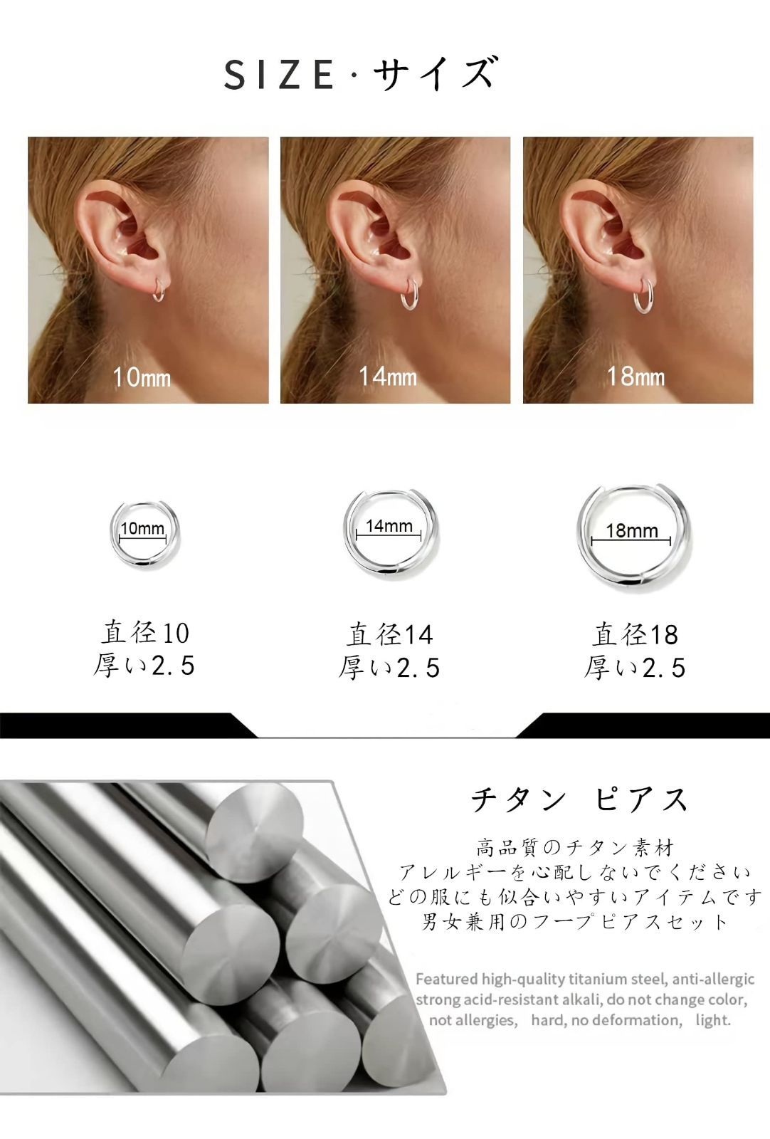 【特価セール】片耳 5連リングピアス 小さめ フープピアス チタン 人気 レディース 金属アレルギー対応(3ペア6個 メンズ ラウンドピアス ピアス) Jewktuai