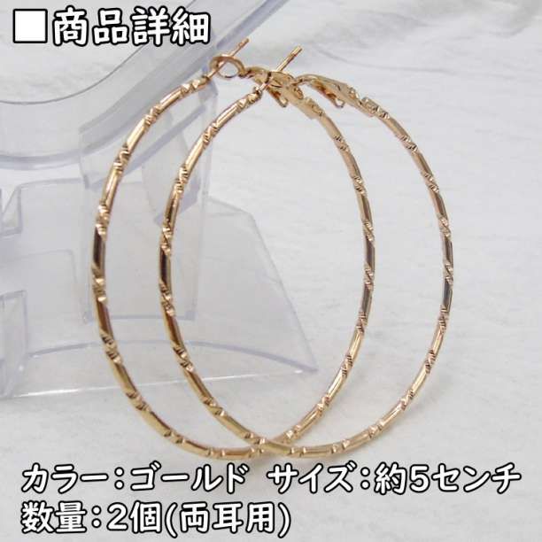 ■リングピアス ゴールド 5cm 2個セット 大きめ 両耳 ピアス シンプル
