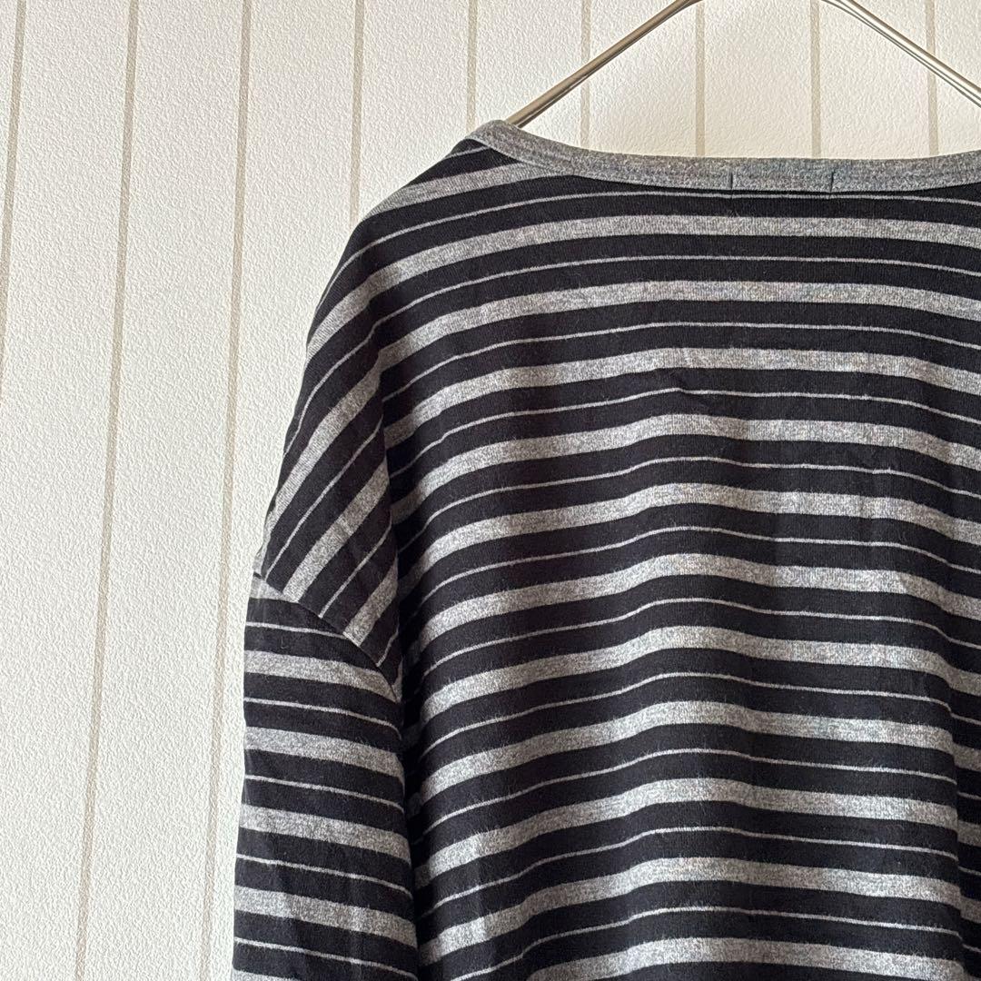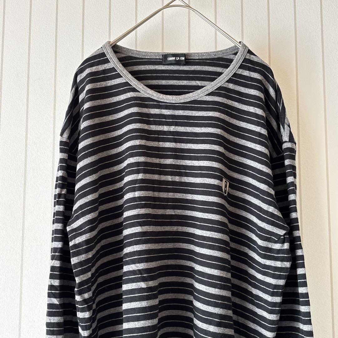 コムサ カットソー ロンT ボーダー インナー 黒 グレー ロゴ ワンポイント
