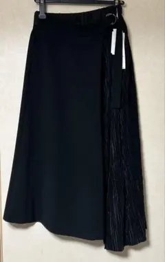 ブラックワイドパンツ 異素材コンビネーション スカート風