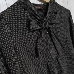 日本製 Lao Targa ラオタルガ ボウタイリボン ドットシャツ ブラウン茶