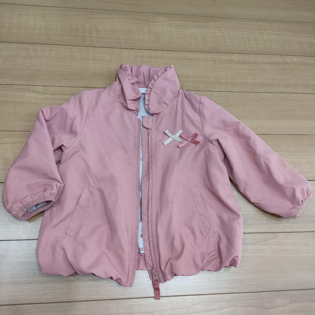 ピンク×花柄(内側) アウター 95cm