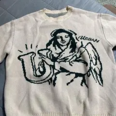 クリーム色 ニットセーター グラフィックデザイン