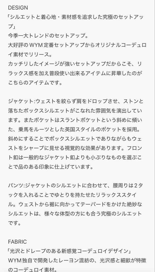 【新品】RAYON 11W CORDUROY SET-UP/セットアップ M