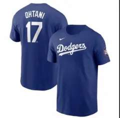 【新品タグ付】NIKEドジャース 大谷翔平 17 Tシャツ Lサイズ 青 ブルー