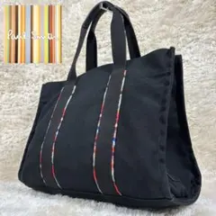 ポールスミス トートバッグ マルチストライプ キャンバス ブラック 黒