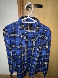 古着 VIRGIN VOYAGE 青と黒のチェック柄 長袖シャツ Lサイズ