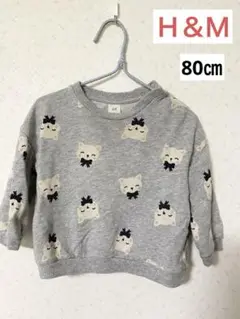H&M 猫柄 グレー トレーナー 80㎝