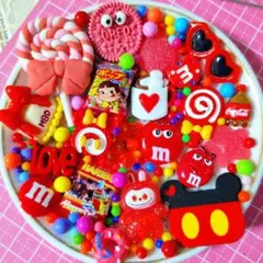 A881-デコパーツ まとめ売り ロリポップ 赤系