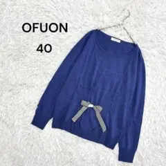 【オフオン】40(L)長袖ニット ストライプリボン Uネック 毛8% ブルー