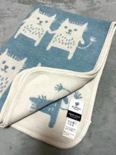 【美品】KLIPPAN オーガニックコットン 猫ブランケット ターコイズ