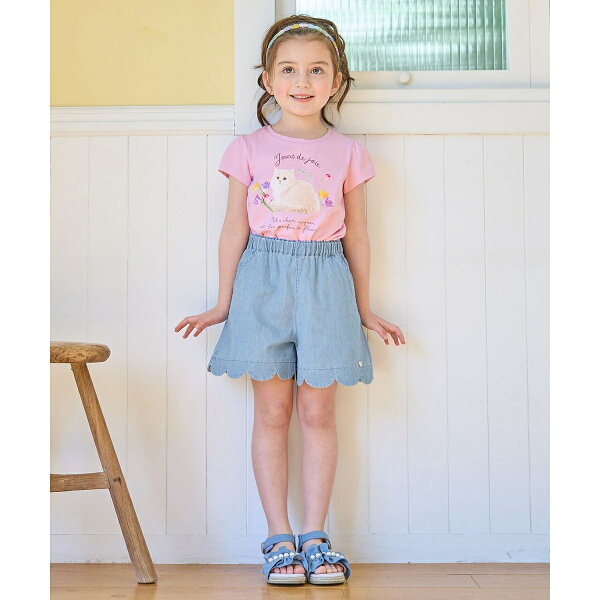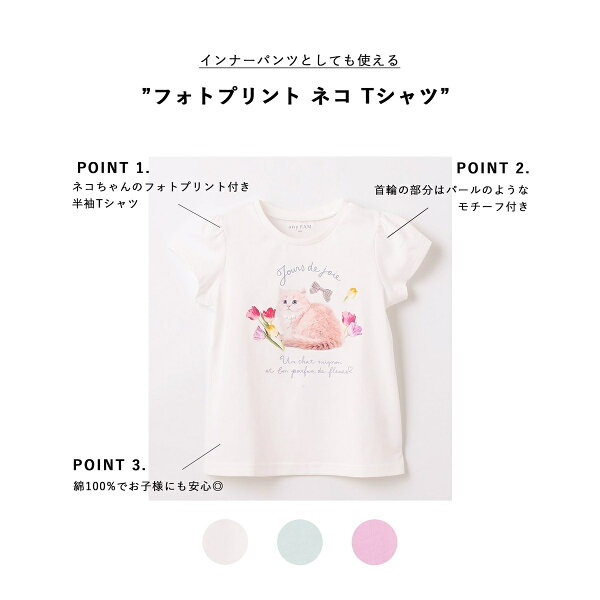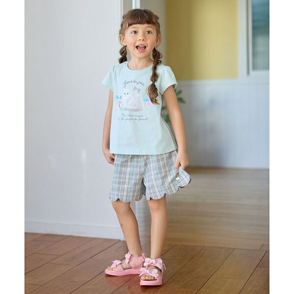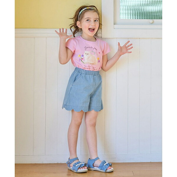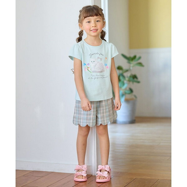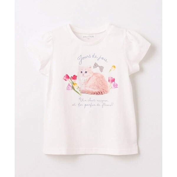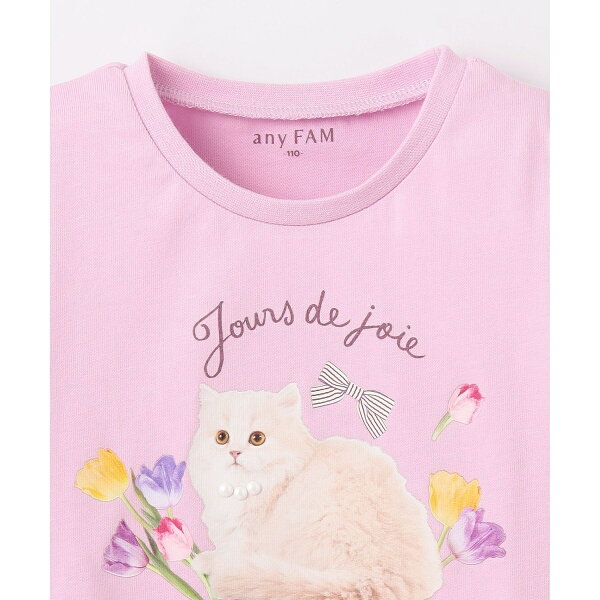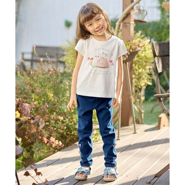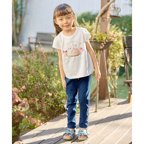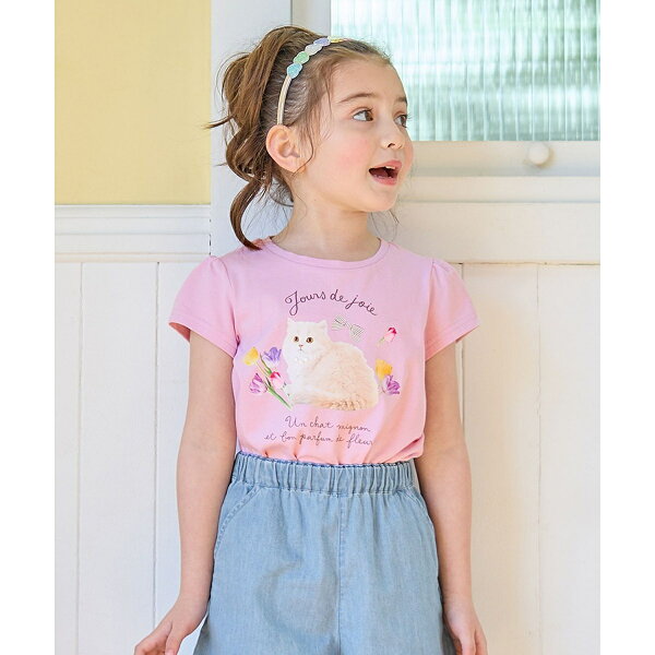 キッズ/半袖/ネコ/アニマル/花/リボン/通園/通学/人気/デイリー/女の子/ガール/サスティナブル商品