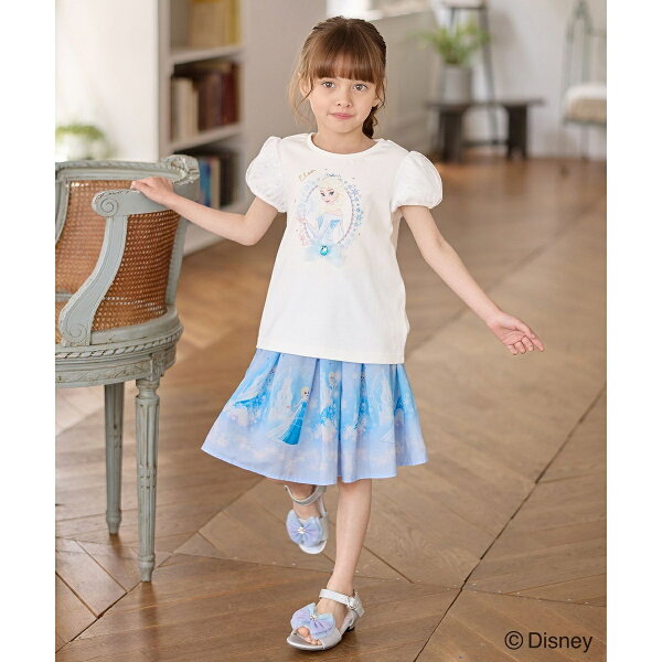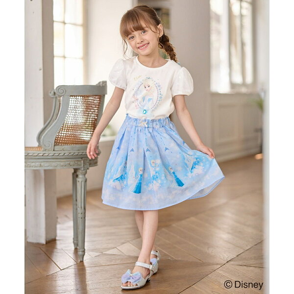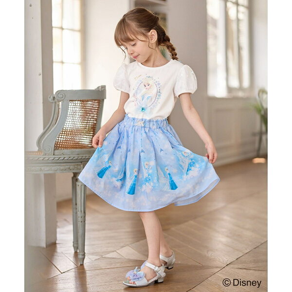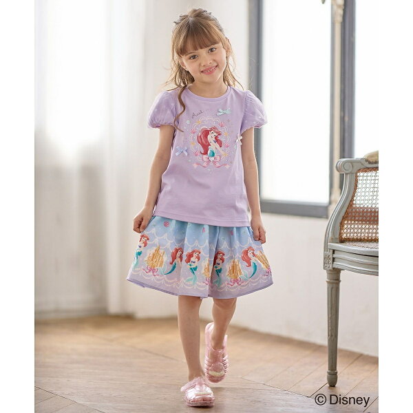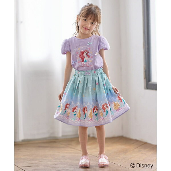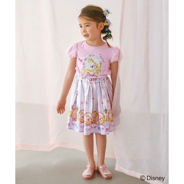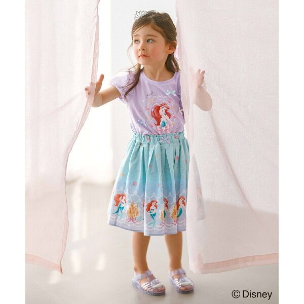 ディズニーキャラクターが描かれた、総柄プリントスカート。エルサ、ラプンツェル、アリエルの3人がモチーフとなっています。それぞれのキャラクターにちなんだモチーフもたっぷり。華やかな総柄デザインで、コーディネートの主役になってくれる一枚です。ふんわりとしたフレアシルエットがとってもかわいい♪同じキャラクターデザインのTシャツ(KKFKCM0130)と合わせたコーデがオススメ!お姫様気分でこの夏もいっぱい楽しもう!
