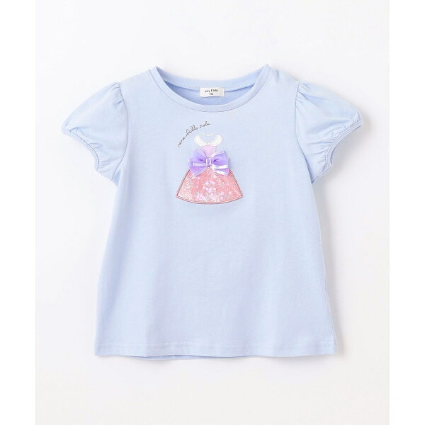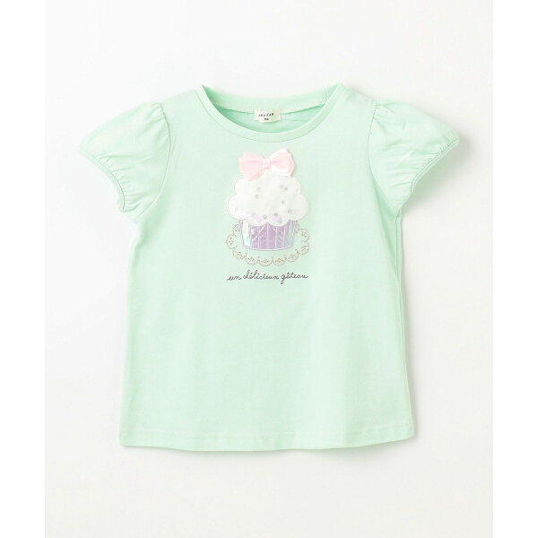 ビーズ入りのアップリケがかわいい、半袖Tシャツ。しゃらしゃら揺れるビーズは、着て・見て楽しい一枚です♪