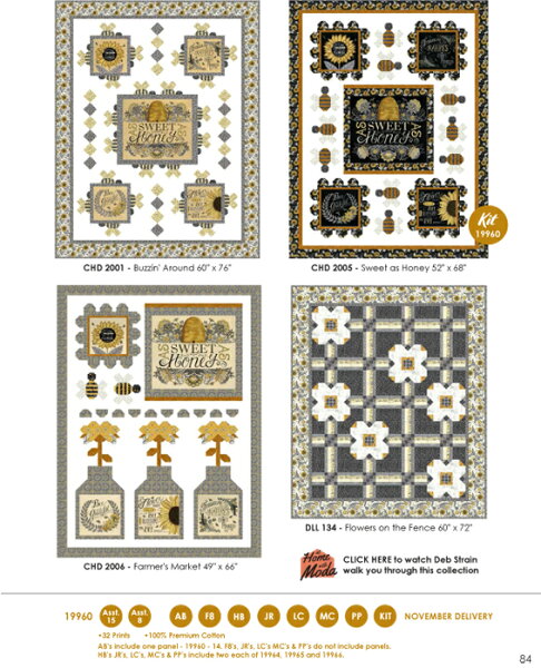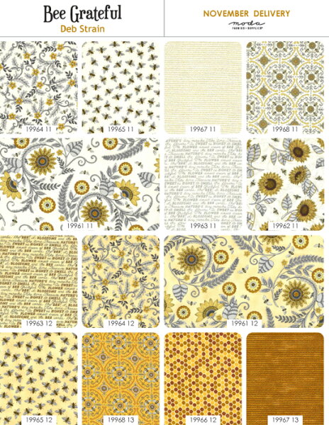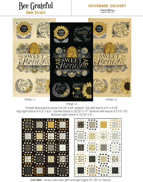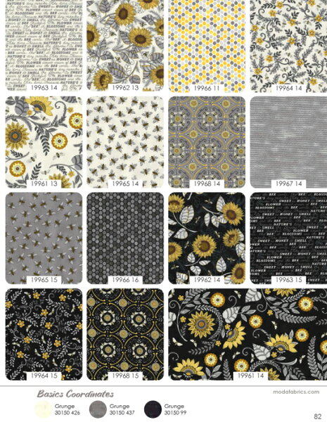 【Moda モダ】Bee Grateful-19960PP(42枚) 約12.7cm×12.7cm ホワイト イエロー グレー 花柄 蜂柄 英字柄 おしゃれ プレカット チャームパック カットクロス カット生地セット コットン100% シーチング
