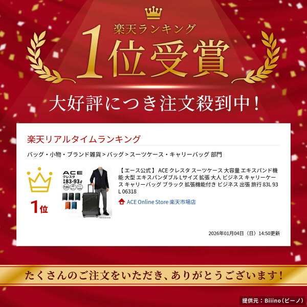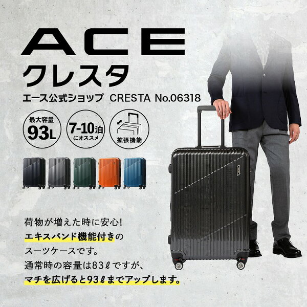 【 エース公式 】 ACE クレスタ スーツケース 大容量 エキスパンド機能 大型 エキスパンダブル Lサイズ 拡張 大人 ビジネス キャリーケース キャリーバッグ ブラック 拡張機能付き ビジネス 出張 旅行 83L 93L 06318