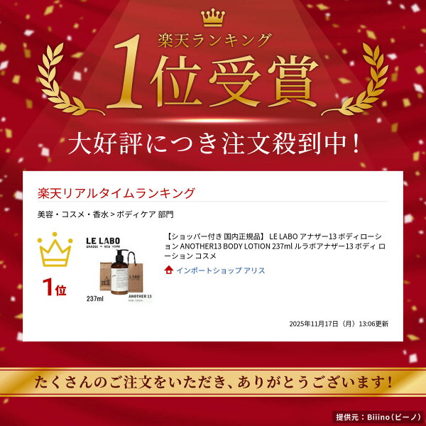 【ショッパー付き 国内正規品】 LE LABO アナザー13 ボディローション ANOTHER13 BODY LOTION 237ml ルラボアナザー13 ボディ ローション コスメ