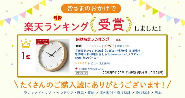 【楽天ランキング1位】【レビュー特典付】掛け時計 電波時計 掛け時計 おしゃれ Lemnos レムノス Campagne カンパーニュ PC10-24W 壁掛け時計 北欧 かわいい 木製 人気 日本製 音がしない 寝室 キッチン 子供部屋 リビング 電波時計 壁掛け ギフト 新生活 タカタレムノス