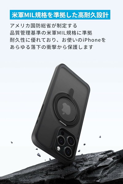 Anker MagGo Magnetic Case (360°リングスタンド, iPhoneシリーズ用) MagSafe対応 リングスタンド付き スマホケース マグネット搭載/滑り止め / 360°落下保護/耐衝撃/高耐久性/黄ばみなし/米軍MIL規格/強磁力リング/隠し収納式