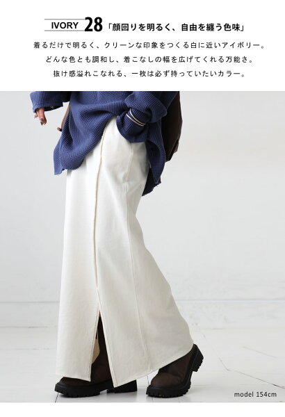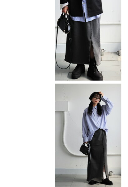 ストレートシルエットが美脚シルエットを自然に演出し、縦ラインを強調することで体型カバー効果も抜群。