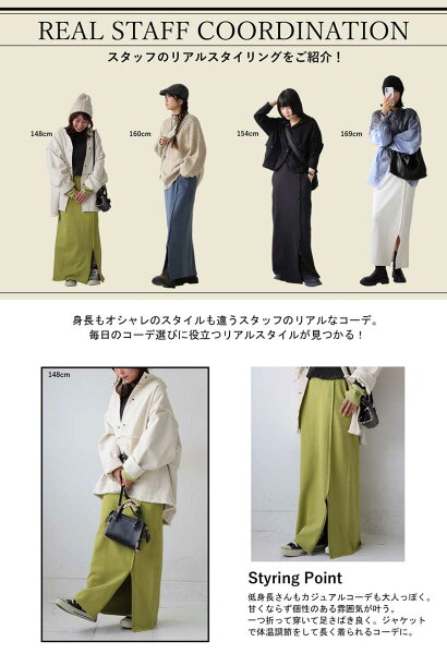丈感は足元までしっかり届くロング丈で、縦のラインを意識したデザインがスタイルアップを叶えます。