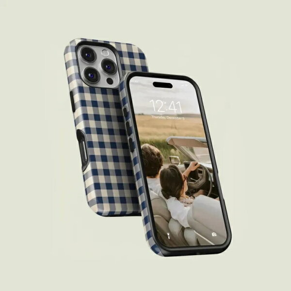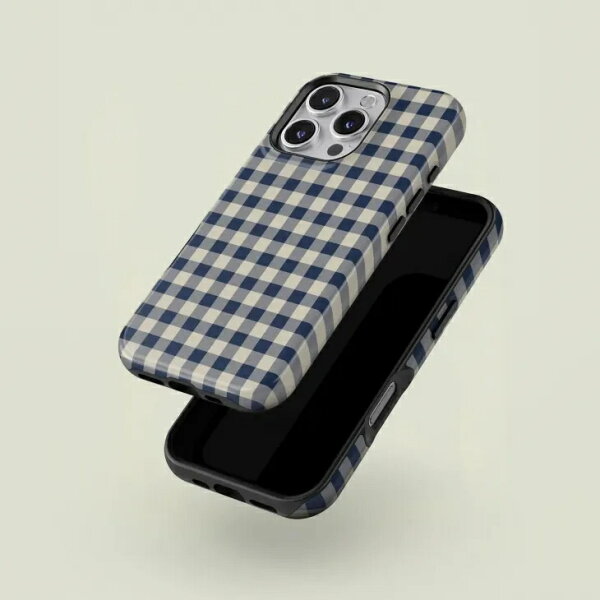 CASE-FACE | Mini Gingham Navy & Cream MagSafe iPhoneケース MagSafe iPhoneケース (iPhone 16/16 pro/16 pro max/15) アイフォン アイフォンケース カバー シンプル おしゃれ 耐衝撃 マグセーフ対応 スマホケース ワイヤレス充電対応 北欧デザイン ミニマリスト【【予約】1月下旬入荷予定 *12/4以降の受注】