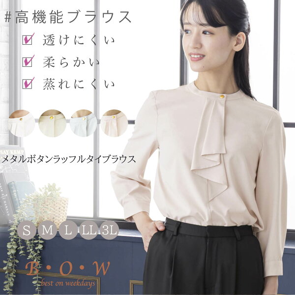 ブラウス レディース 通勤服 オフィスカジュアル オフィス セレモニー bow おしゃれ ボウタイ 長袖 オフィス フリルブラウス メタルボタン ボウタイ 大きいサイズ オシャレ スーツインナー ボウタイブラウス 長袖ブラウス ビジネス ラッフル 白 グレー ピンク 春 秋 冬