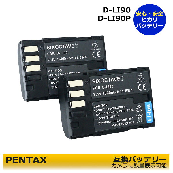 D-LI90 / D-LI90P 2個セット ペンタックス 互換バッテリーパック 1点 645 / 645D / 645Z / 645Z IR / K-01 / K-01 White×Blue / K-1 / K-3 / PENTAX K-3 Mark III(純正充電器 K-BC90PJ で充電可能)デジタル一眼レフカメラ対応