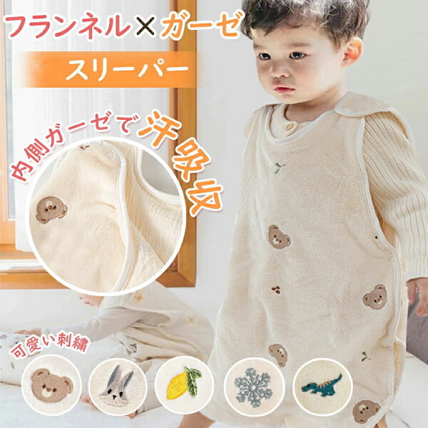 BRILBE 刺繍入り スリーパー 冬 ベビー キッズ フランネル 内側 ガーゼスリーパー フリース 冬用 軽くてあったか フリース 赤ちゃん 新生児 横開き 着る毛布 寝たまま着せられる 0歳~7歳 出産お祝い